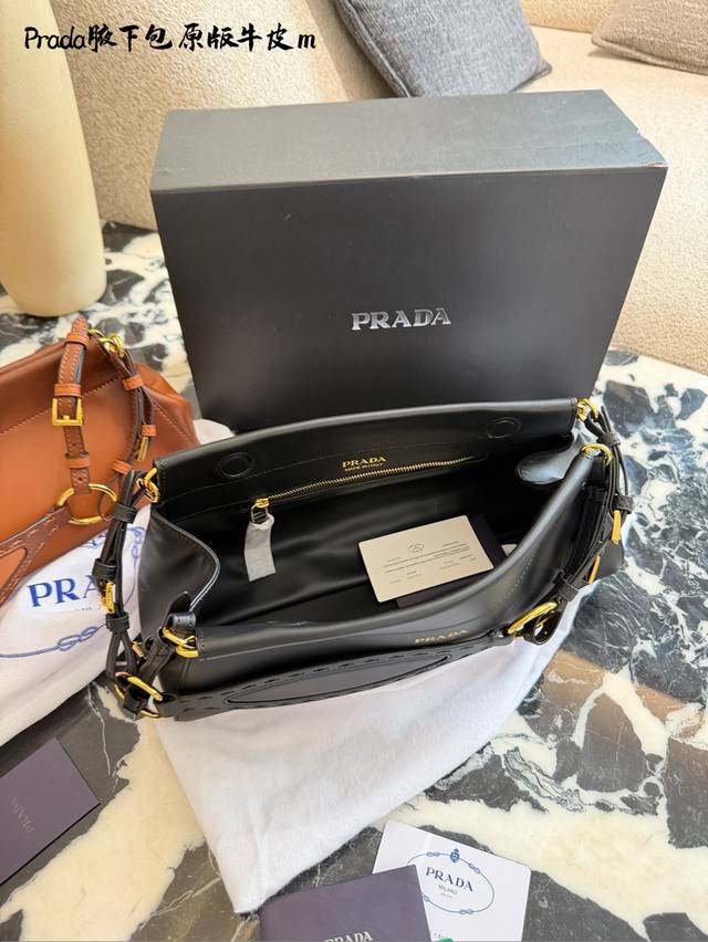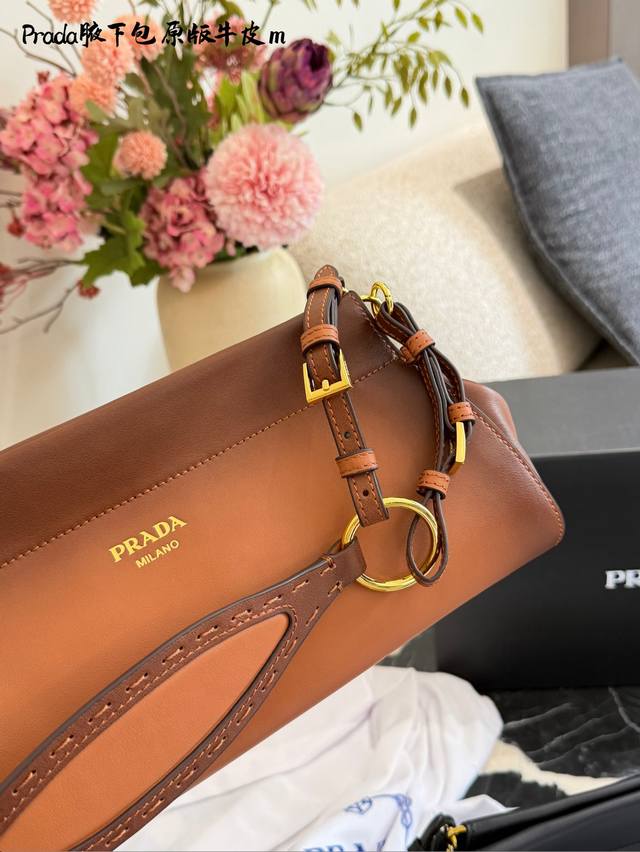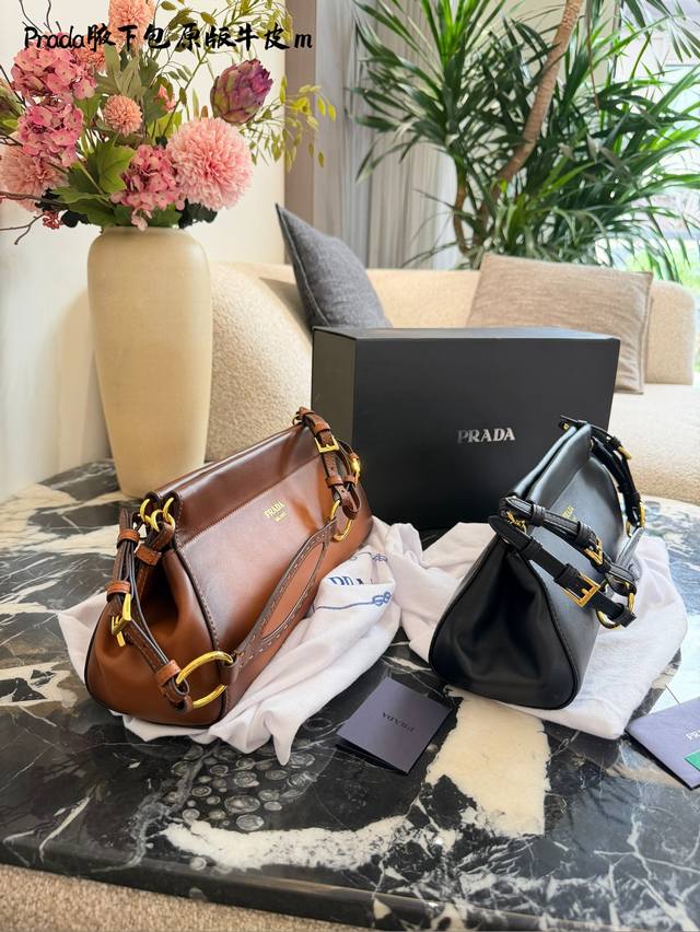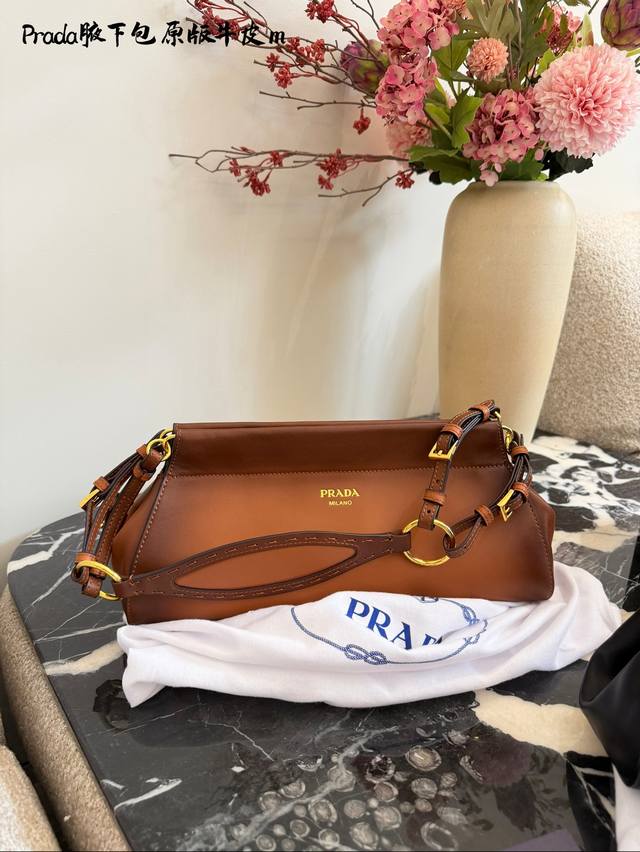 Prada Fall/Winter runway bag, distressed vintage leather, very charming, 28cm underarm bag with box.