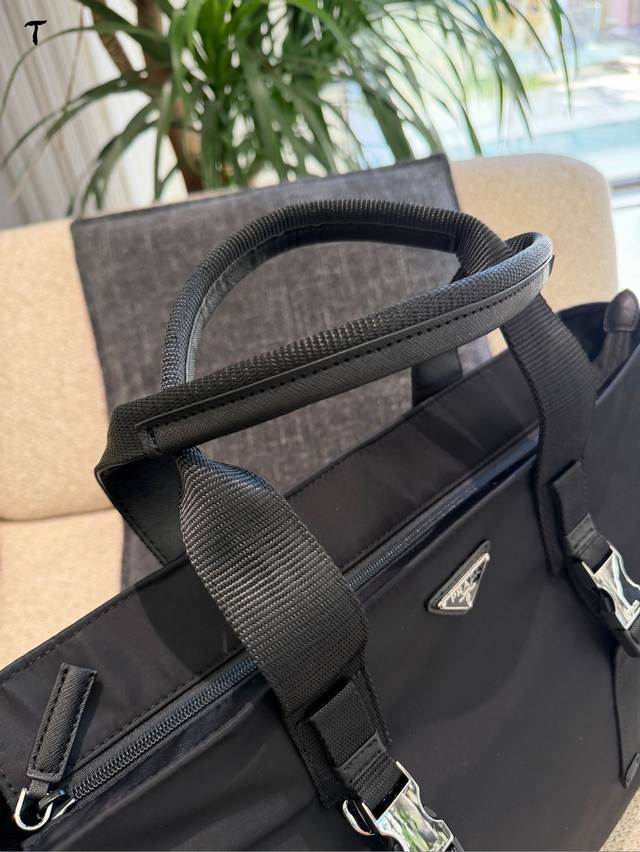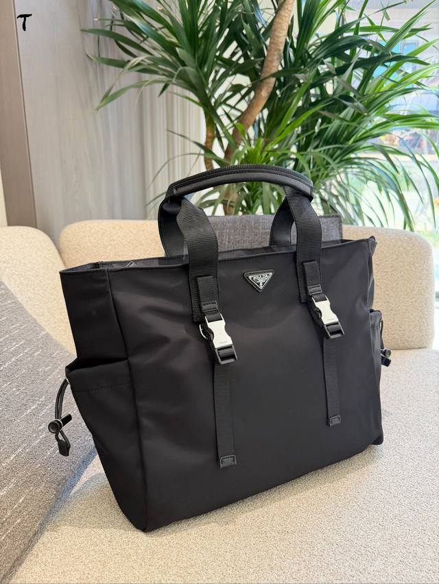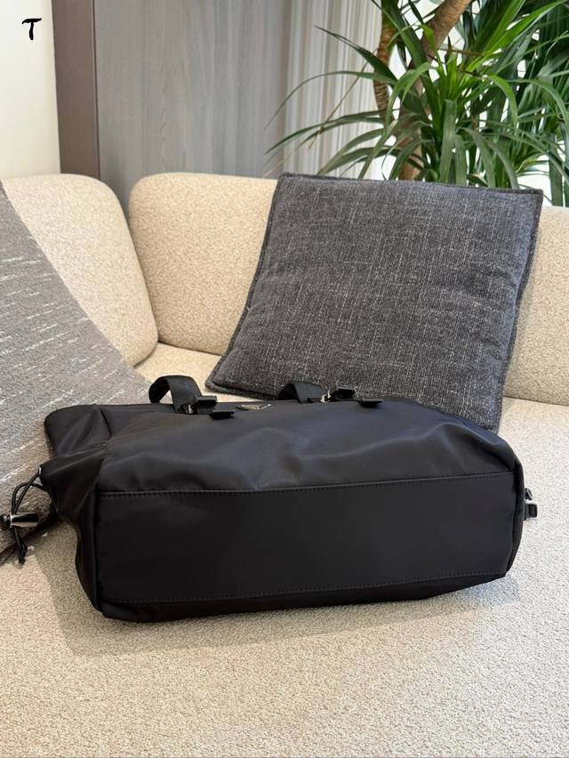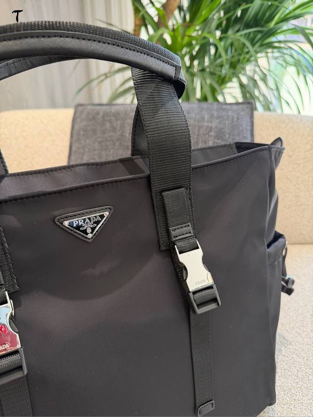 Prada Recycled Nylon Tote Bag DDD This Prada recycled nylon tote bag is made of environmentally friendly materials, lightweight, durable, and waterproof. It features a simple and stylish design with the classic triangular logo on the front, making it highly recognizable. Measuring approximately 40 x 35 cm, it has a large capacity, suitable for commuting and short trips. The interior has multiple compartments for easy organization, and the top zipper provides added security. The nylon lining is easy to clean, making it highly practical and suitable for both men and women. ~No box DDD