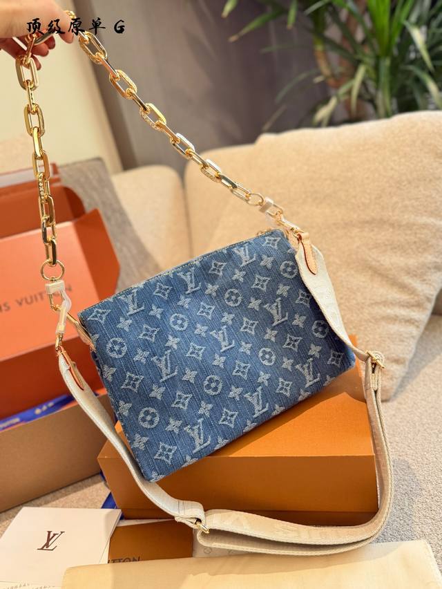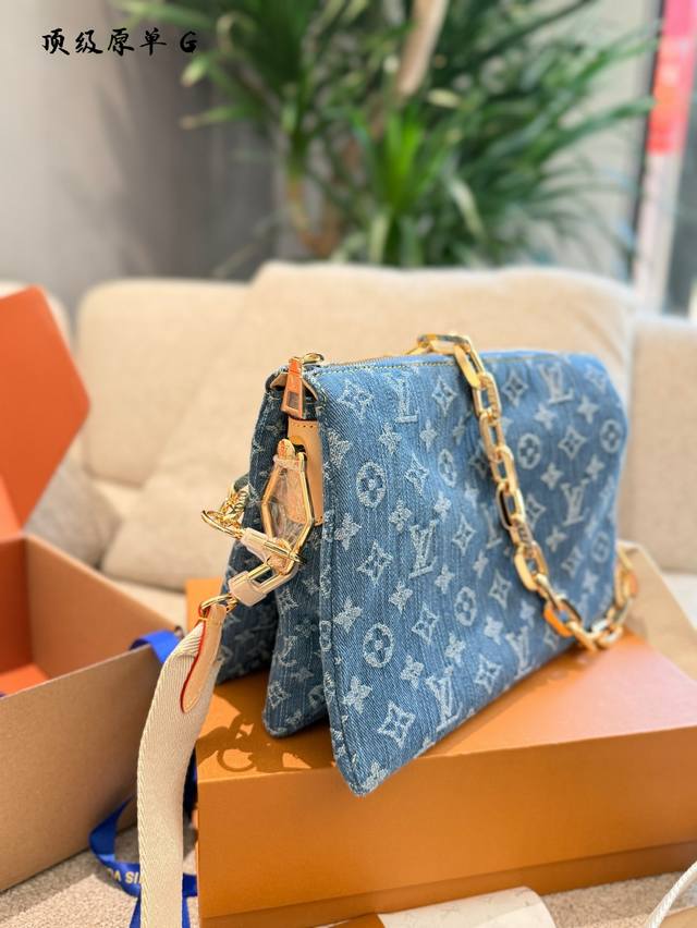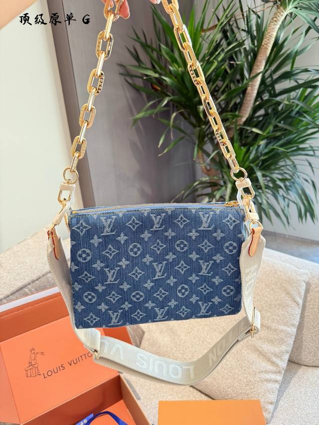 The latest addition to the collection, this Coussin PM bag features the Monogram Denim pattern designed by the brand in 2005. Carefully woven from organic cotton, it is painted bright pink on a white base. The large chain featured on this model is detachable so it can be worn in a variety of ways. 26X20 X12 cm L X H X W Faded pink organic cotton Natural cowhide trim Organic cotton lining Light gold metal zipper Can hold: smartphone, keys, headphones, Victorine wallet and lipstick Shoulder strap: detachable, adjustable Wear strap length: 30.0 cm Maximum wear strap length: 50.0 cm Chain: detachable Wear chain length: 30.0 cm Maximum wear chain length: 50.0 cm