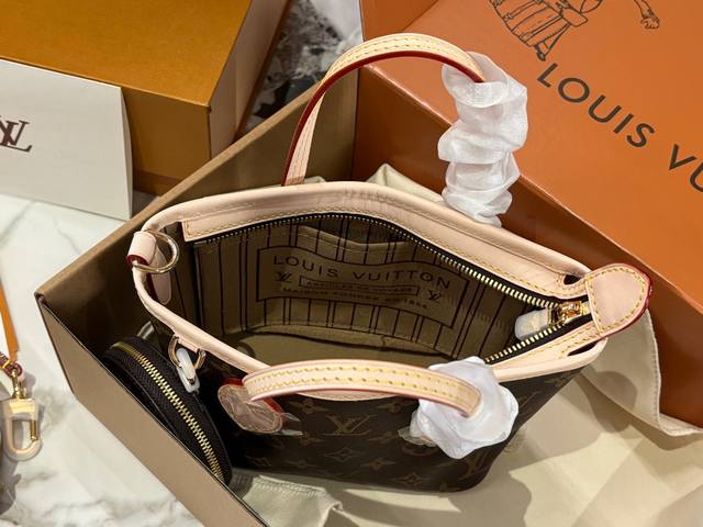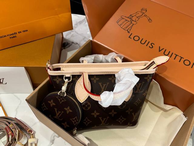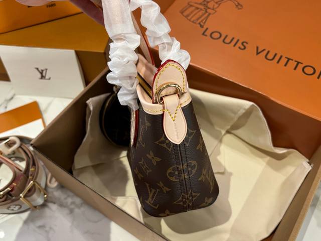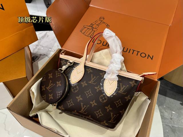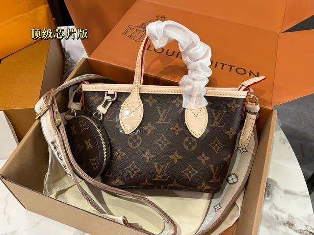 Top-tier chip-print color-changing leather Iv Neverfull Bb handbag combines classic design with iconic details. Crafted from Damier Ebene canvas with a colorful fabric lining and cowhide leather trim, it's spacious yet not bulky. Tightening the sides creates a trendy look, while loosening it exudes a casual vibe. It features slim, comfortable handles for shoulder or elbow carrying. The detachable handle can be used as a clutch or pocket. Dimensions: 24 x 14 x 9 cm (Length x Height x Width).