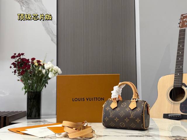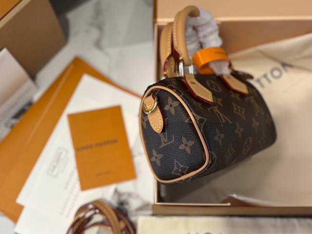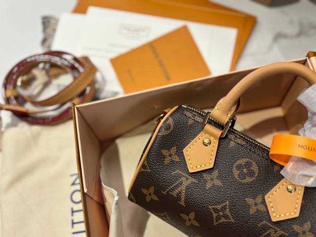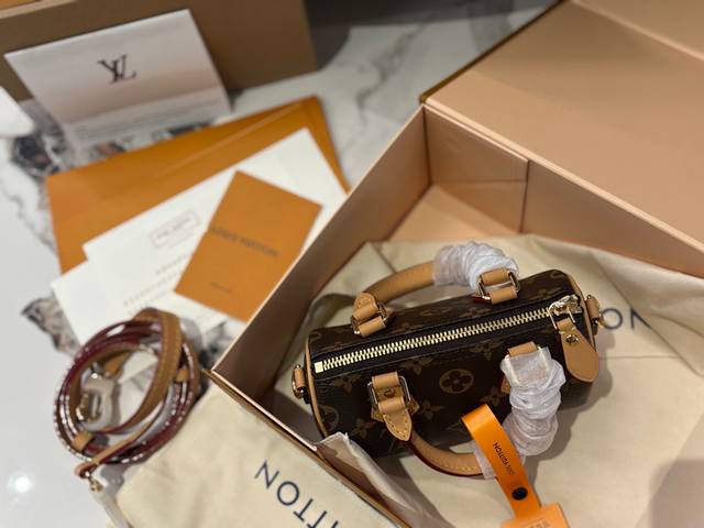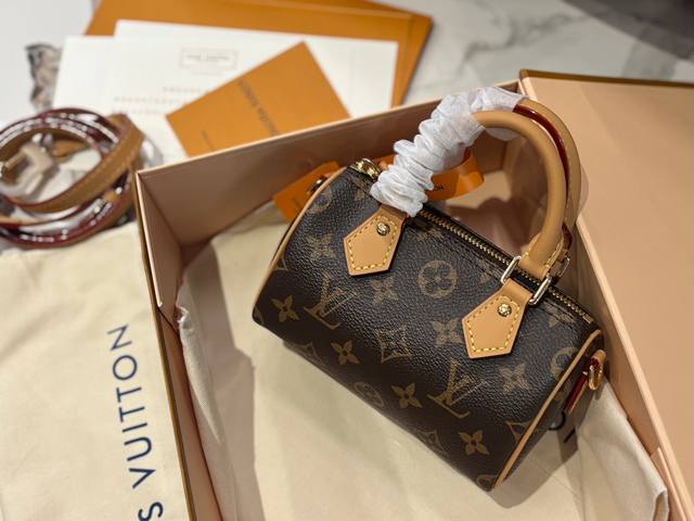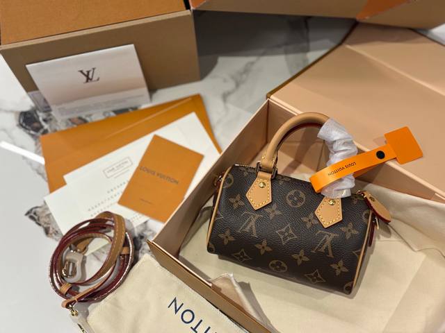 Top-tier original chip version DDD Speedy Nano pillow bag sharing. An exquisite bag DDD Classic monogram + caramel-colored corner leather, the bag retains the soft texture of the Monogram. Just casually placing it anywhere instantly elevates its overall style; it's particularly charming. DDD It has ample capacity, making it more suitable for everyday use. The proportions are perfect when worn, a must-have item! Super beautiful 16cm folding box packaging DDD
