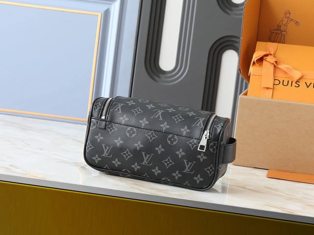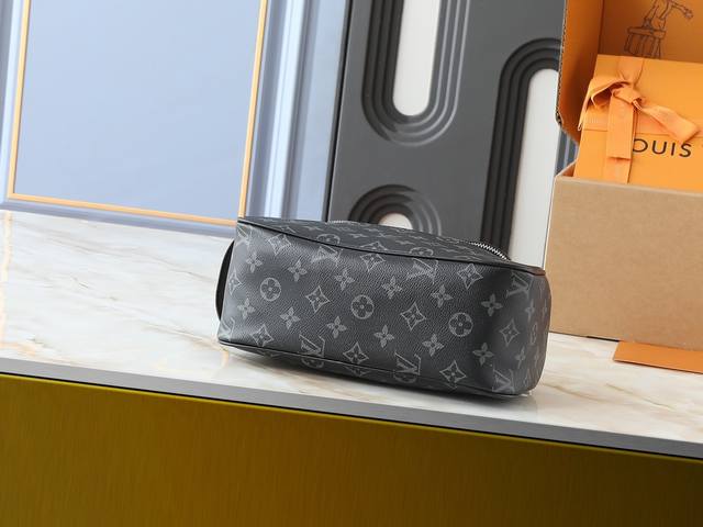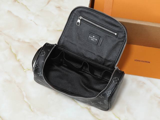Upgraded original M11510 This vanity bag is made of Damier Graphite canvas, which has a rugged feel. The practical elastic lining keeps the bottles upright. Dimensions: 20 x 9.3 x 28 cm height x width x length