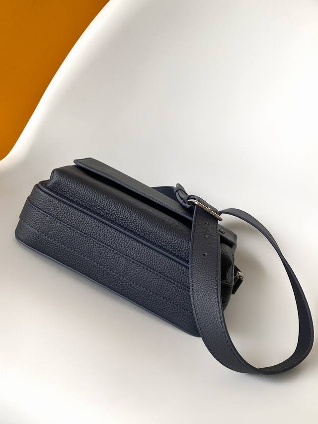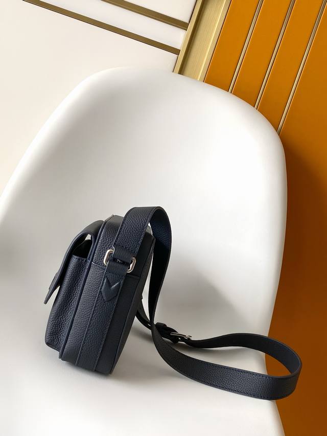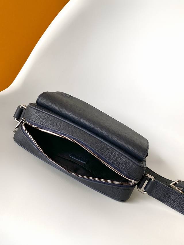 163C01 Chip Top Grain Cowhide M15260 Dark Blue M15265 Black Boarding Messenger Bag. This Boarding messenger bag is crafted from lightweight and durable waxed cowhide leather. Its compact design features interior and exterior slip pockets for easy storage of an 8.3-inch tablet. Adjustable leather shoulder strap enhances comfort. Top-tier original. Dimensions: 18 x 9 x 24 cm (H x W x Length).