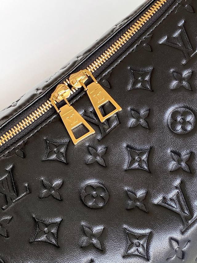 163C01 Chip Top Original Semi-Steel Hardware M12072 Brown M12071 Apricot M12068 Black This new Coussin series hobo bag combines fashion and functionality, and blends the series' iconic design elements. The handbag is made of smooth quilted leather and embellished with the brand's Monogram embossed pattern. The iconic thick chain is paired with gold-tone hardware, while the detachable wide textile shoulder strap can be carried in different ways. This versatile style is large enough to accommodate a laptop and has a detachable zipper pocket. Dimensions: 38X33X10 cm