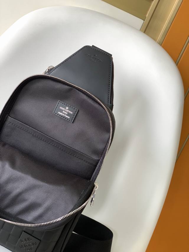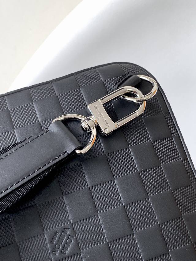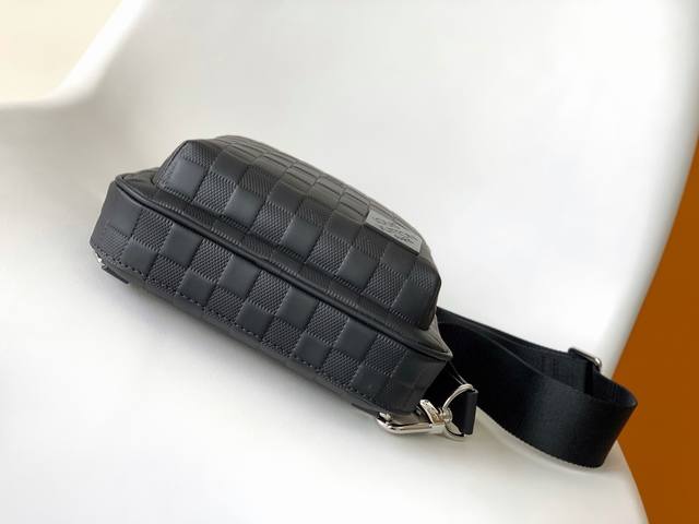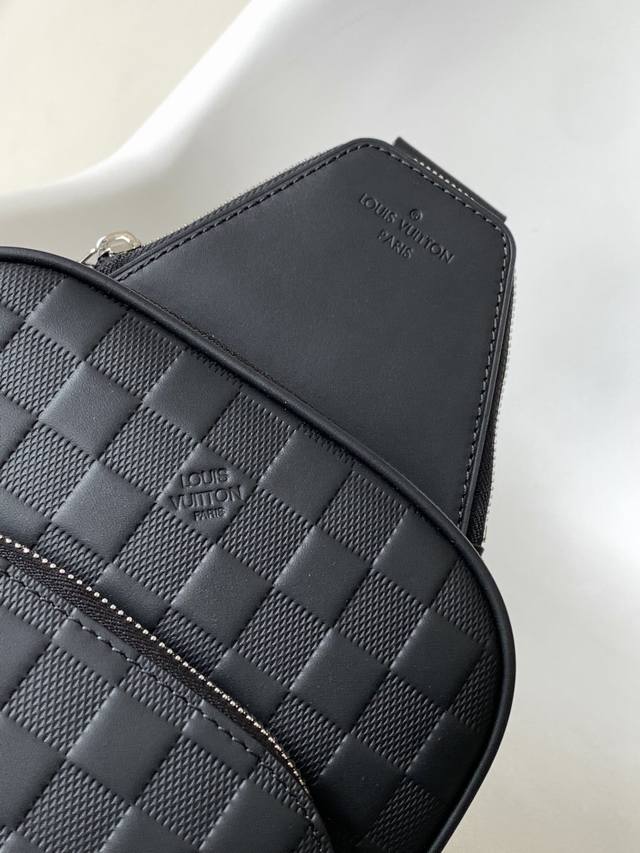 163C01 Chip Top-Tier Original Avenue Shoulder Bag features a classic Damier Infini leather surface embossed with a checkerboard pattern, maintaining pattern clarity without compromising the soft texture. The adjustable shoulder strap can be secured to either side via D-rings. Damier Infini cowhide leather, cowhide trim, fabric lining, square metal hardware on the front, main compartment, zippered front pocket, small top zippered pocket, shoulder strap: non-removable, adjustable!! Model: N45303; Dimensions: 20X31X7Cm DDD
