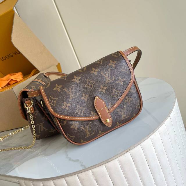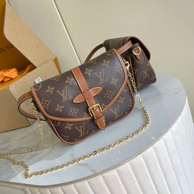 163C01 Chip version internal price p Model number: M26592, M27096 Original enhanced version exclusive real shot background picture The new Duo Bb handbag for autumn and winter 2025 has a brand-new silhouette, combining chic design with modern style. This interesting accessory reinterprets the classic shape of the Saumur handbag, using the brand's iconic Monogram canvas with contrasting cowhide trim and an adjustable shoulder strap. It can be worn around the waist, with two compartments on both sides of the hips, or it can be split into two independent handbags. Metal parts add a refined texture.