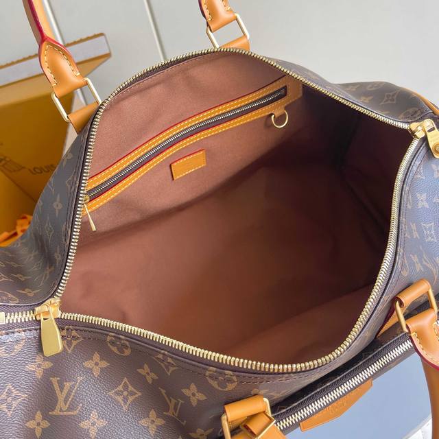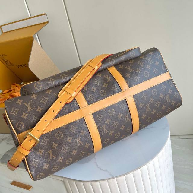 163C01 Chip Version Internal Price p Style Number: M14735 Original Enhanced Edition Exclusive Photos Background Image This Keepall Cargo 50 travel bag from the Monogram Archive collection offers a modern nod to the brand's classic design. The Monogram coated canvas body is accented with distressed cowhide leather trim and dazzling hardware. The main compartment and front pocket zipper pulls are embellished with metallic beads, showcasing Pharrell Williams' cutting-edge design.