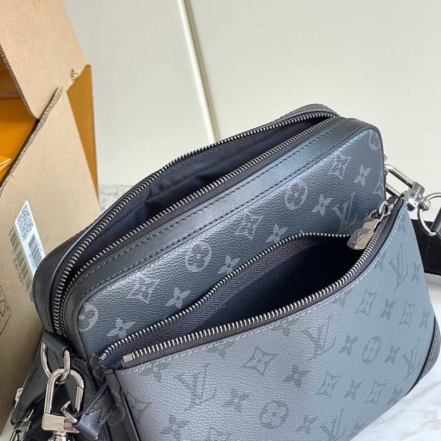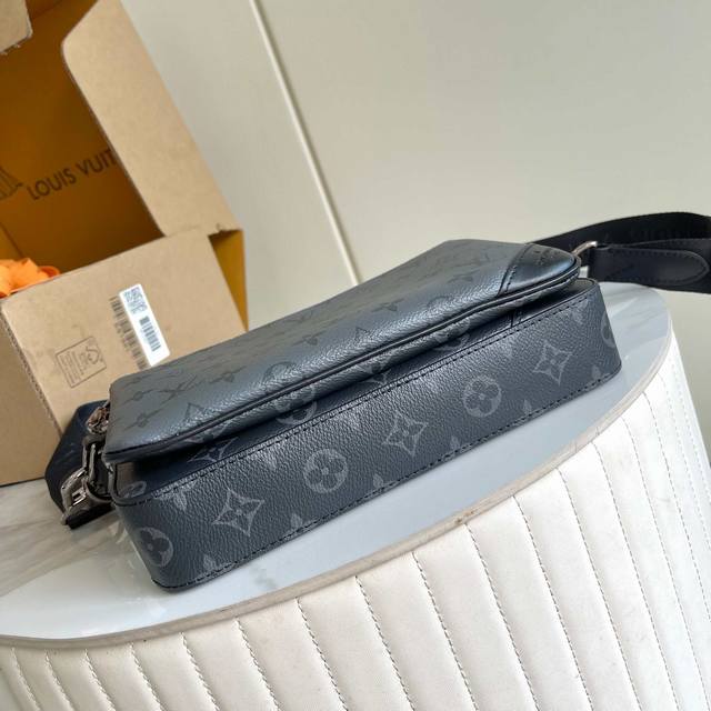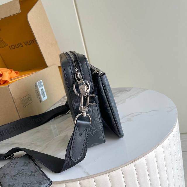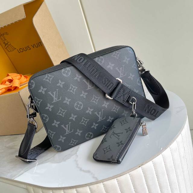 163C01 Chip Version Internal Price p Style Number: M69443 Exclusive Photos of the Original Enhanced Edition (Background Image) The Trio Messenger Bag is crafted from Monogram Eclipse and Monogram Eclipse Reverse canvas. The signature tonal gray pattern highlights the lines of this versatile, modular design. In addition to its traditional crossbody functionality, it also features a removable zippered pocket and a coin purse attached to the strap. Dimensions: 25 x 18.5 x 7 cm (