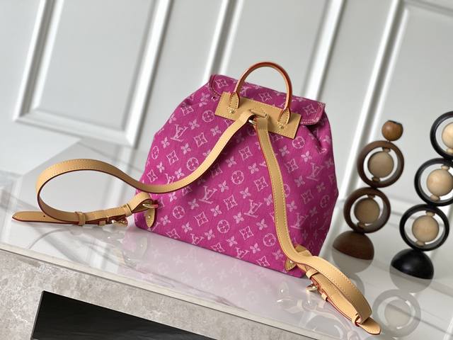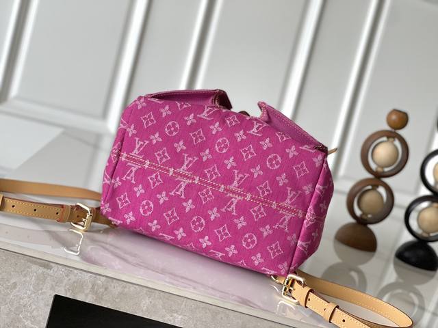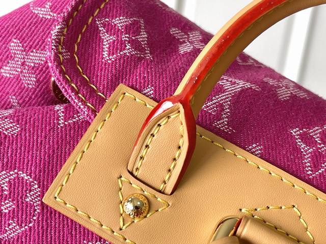 163C01 Exclusive photo of the code-changing chip M95240 denim backpack, a vintage, out-of-print, limited edition. Made of denim canvas, soft suede lining, front snap-lock flap pockets, and interior compartments. Can be carried by hand or on the shoulder, convenient and practical, perfect for any style. Dimensions: 28.5 x 20 x 27.5 cm.