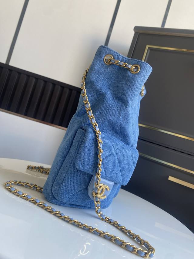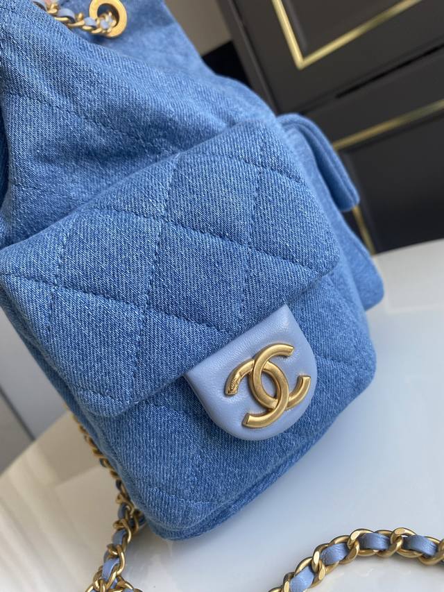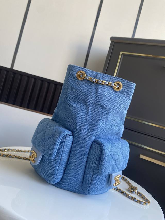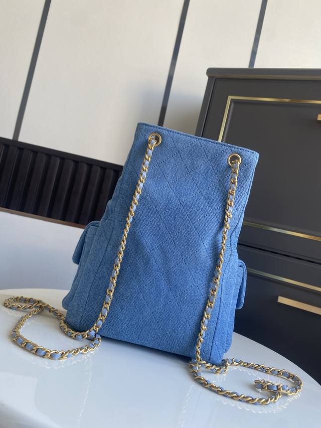 25C Early Spring Resort Collection Denim Backpack with Leather Strap and Chain Style Single-Compartment Backpack! It can hold a lot of items and is versatile and retro. Don't you love this beautiful and practical backpack?