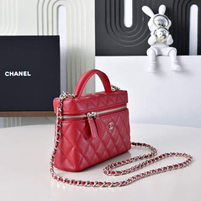 25C Lunchbox Bag, exquisite and compact chain clutch bag. Made of calfskin with gold-tone metal accents, the pebbled leather surface is scratch-resistant. The chain is detachable, allowing for hand carrying. The capacity is also just right. Its unique design and practicality have made it my recent favorite. Style number Ap5700. Sizes: 17-19.5-5 cm. Comes with packaging.
