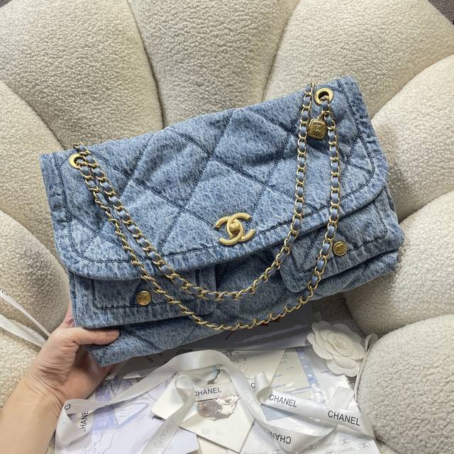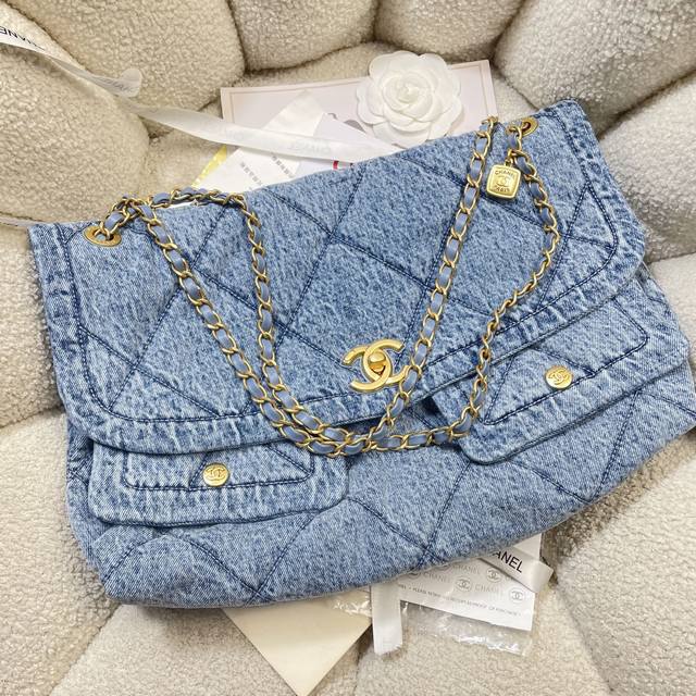 25K, I'm so tempted! The front pocket instantly adds a functional touch to the classic quilted pattern. Retro and elegant, the gold double C logo on the large flap exudes sophistication. It has both classic appeal and a fresh feel; the leather is soft, smooth, and supple. Stylish, retro, and highly recognizable. Style number As5727. Sizes 27-45-10.