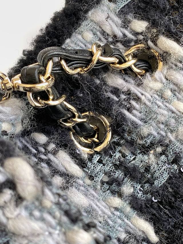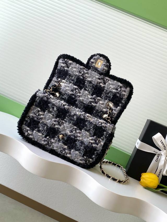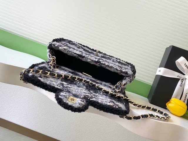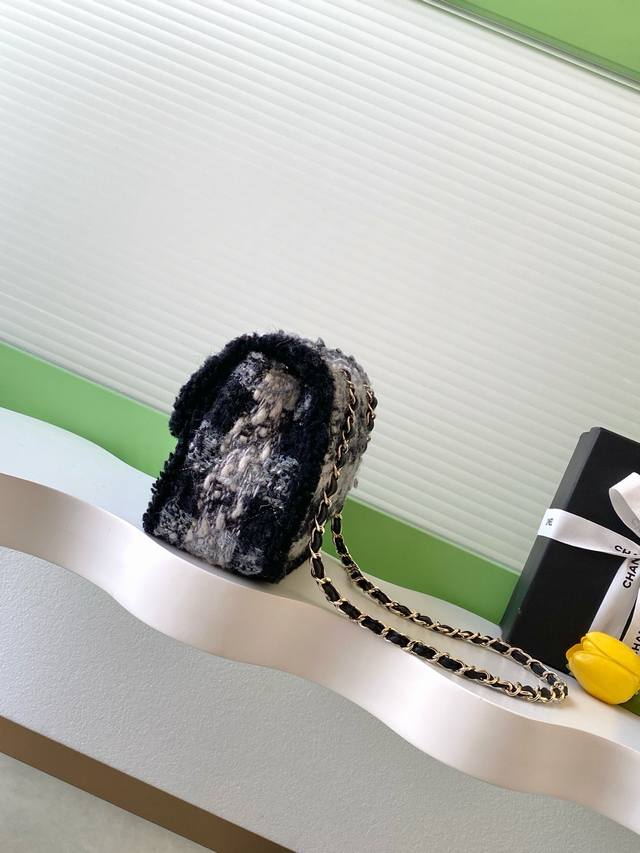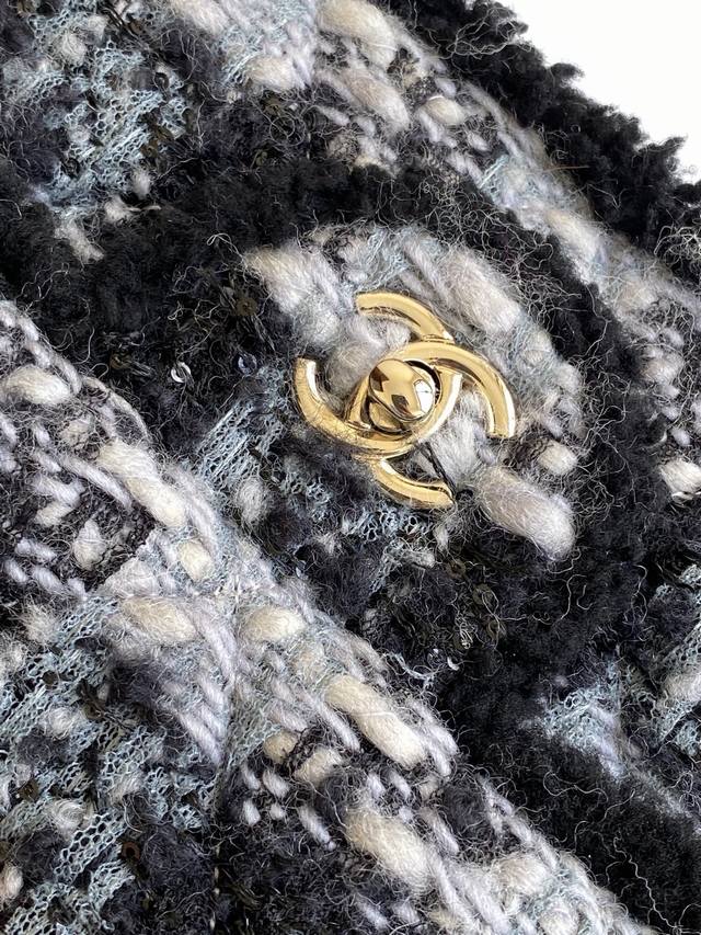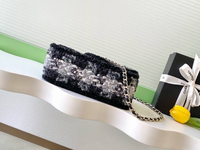 25N Tweed CF bag is a limited edition from the 2025/26 Coco Neige Ddd Ski Collection. It features a black and white tweed material with a classic double-C metal buckle, exuding elegance, retro charm, and high recognizability. The chain shoulder strap allows for hand-carrying or crossbody wear, making it both practical and stylish! The soft, layered tweed adds a touch of sophistication, perfect for pairing with sweaters and coats in winter. This Ski Collection is released only once a year, making it a highly collectible item and a must-have for fashion enthusiasts! Style number As5686. Sizes: 16.5-26.5-9 inches. Comes with packaging.