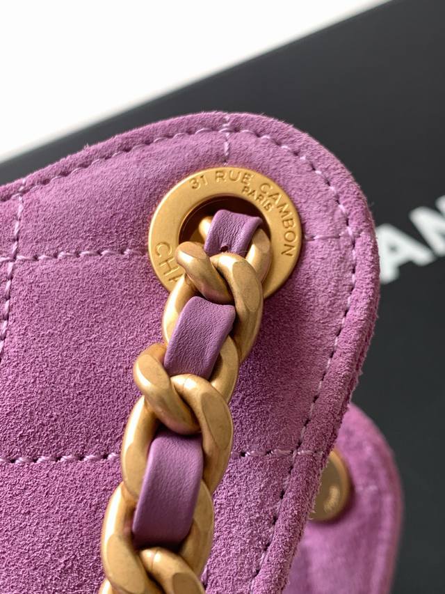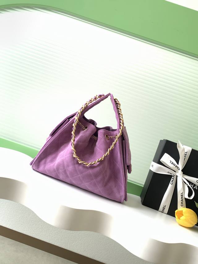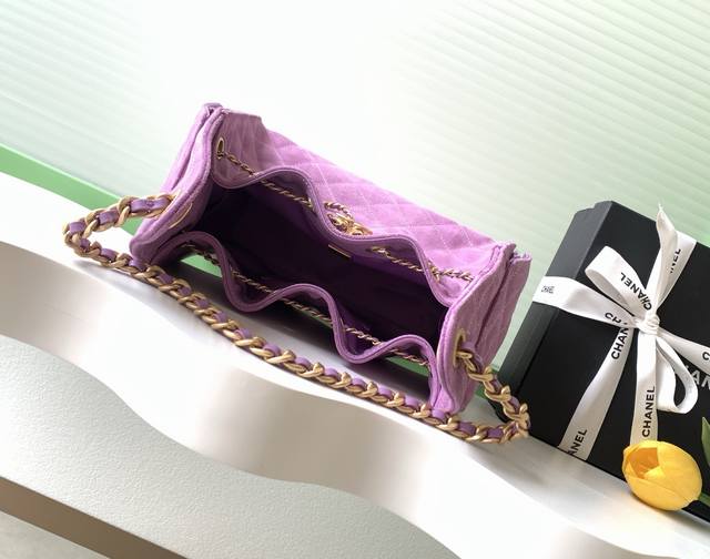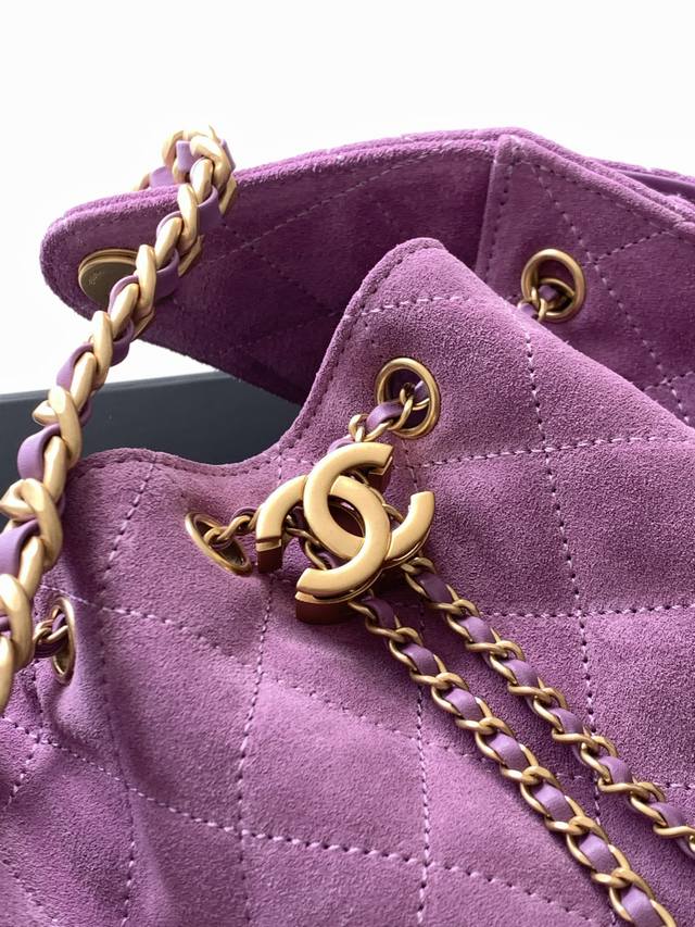 26C Bag, Suede Leather, Vintage Gold Coin Button Drawstring Bucket Bag with Quilted Pattern, Classic Chain Design, Exuding Sophistication! A must-have for everyday outings, exquisite appearance, delicate texture, easily adaptable to both casual and formal occasions. Style Number As5293, Size 30-26-14.