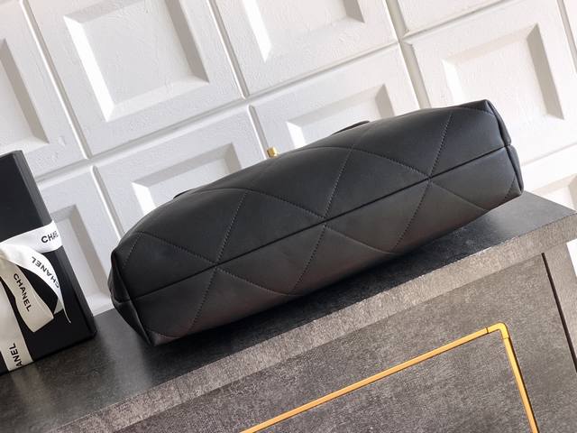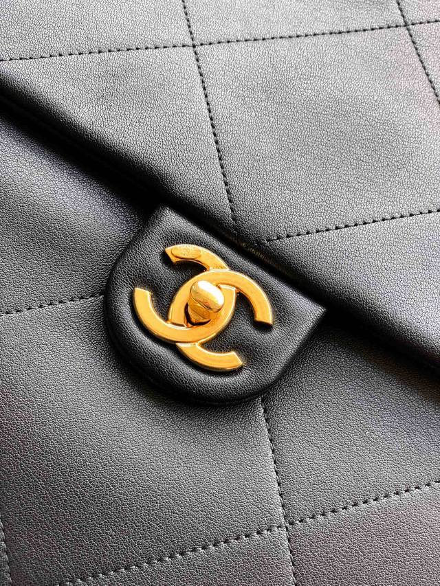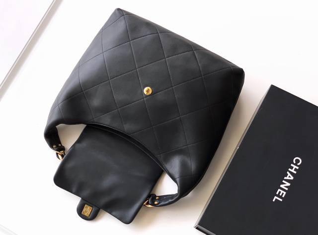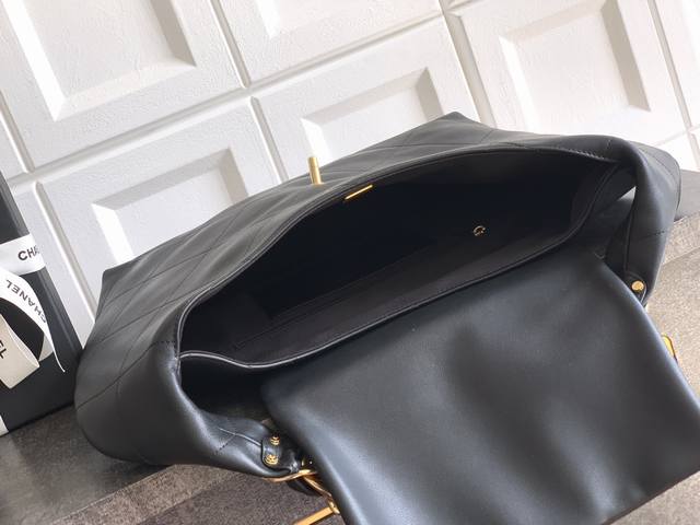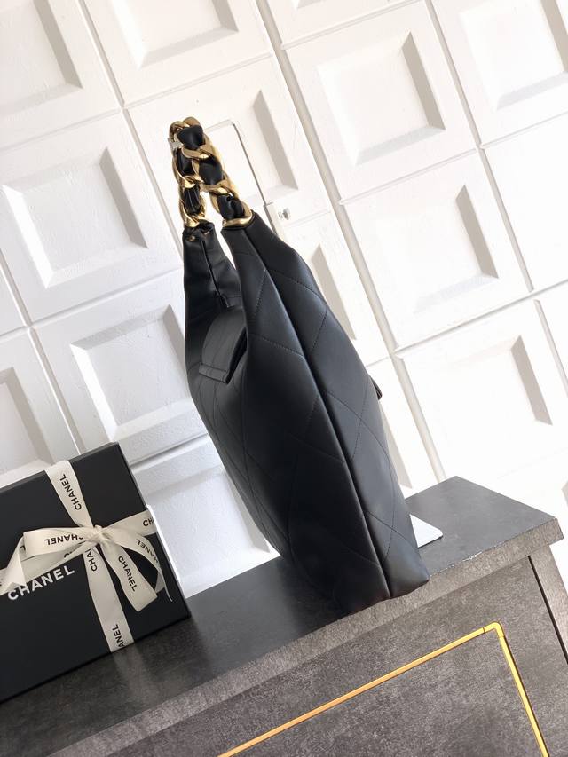 : 35 x 47 x 9 cm. Ohanel 25K Hippie Hobo Bag! A Fall/Winter runway Hobo Maxi bag exuding confidence and unisex style. The glossy calfskin is "delicate and soft," the Hobo shape is "laid-back," and the chunky chain adds a "cool" touch. Effortlessly stylish, it's perfect for both work and casual outings. The double C clasp subtly shines, and the spacious interior is perfect for commuting and can even hold an iPad! Size: 35 x 47 x 9 cm.