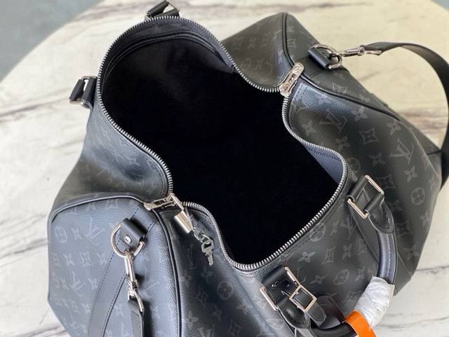 50 Size, top-grade original M40601 black flower bag, spacious and flexible. Durable, secure, and reliable. Stylish and sophisticated. Featuring a secure double zipper and padlock, it's perfect for business or pleasure. Dimensions: 50 x 29 x 22 cm