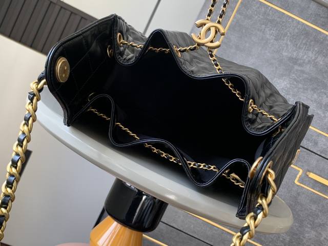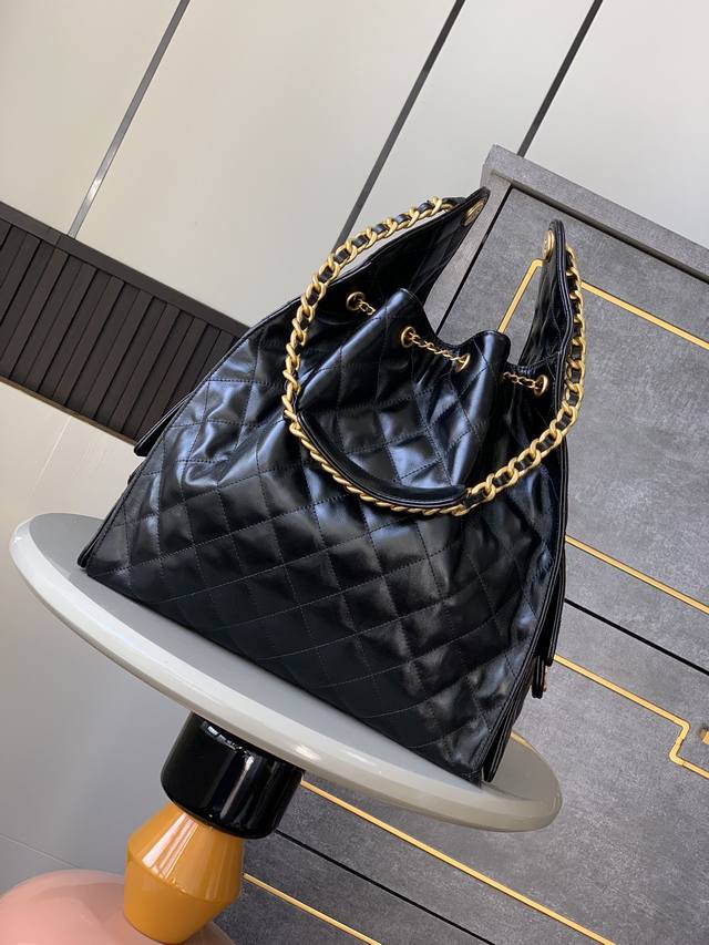5311 leather Ohanel's new large spring/summer bag, this casual, relaxed, hippie-inspired black and gold bag is the undisputed king of spring/summer vacations! This elegant, intellectually elegant, female-dominant bag is not only beautiful but also practical, perfectly matching most people's expectations for bags today. Material: Matte leather and gold metal. Size: