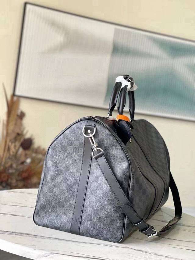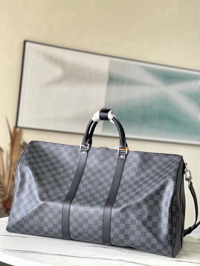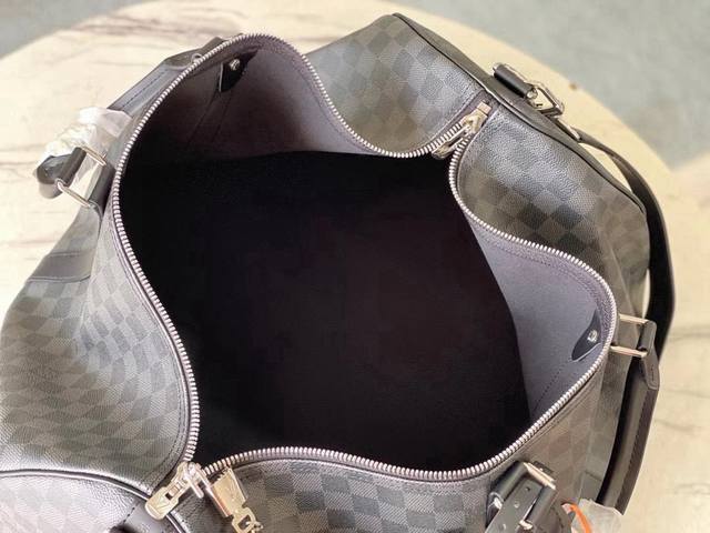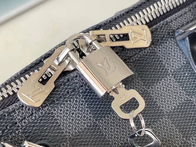55 Size, Premium Original N41414. This black compartment offers spacious storage and flexible use. Durable, secure, and reliable. Stylish and sophisticated. Featuring a secure double zipper and padlock, it's perfect for business or pleasure. Dimensions: 55