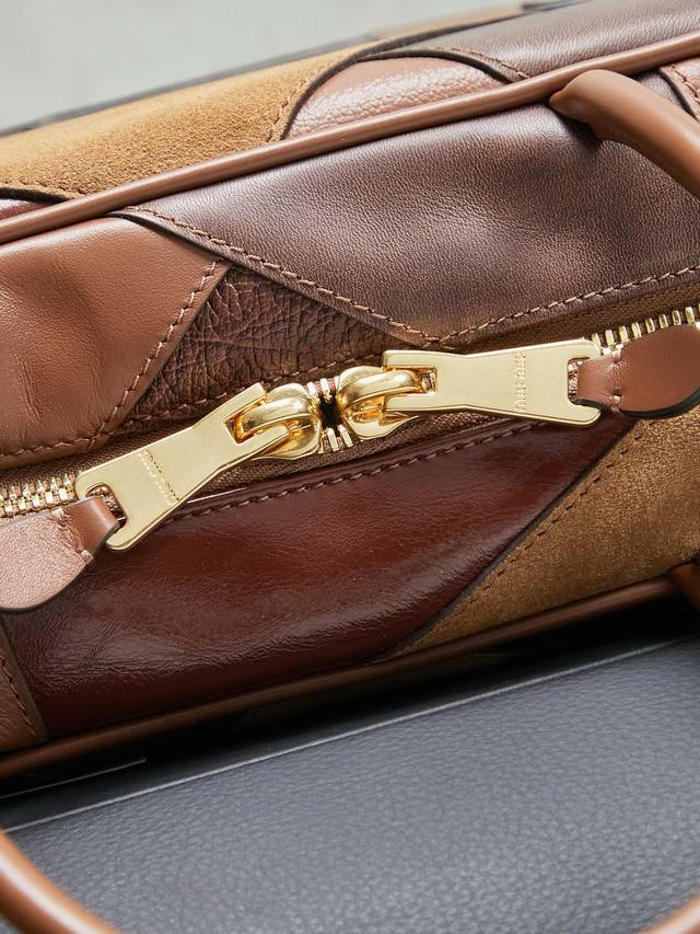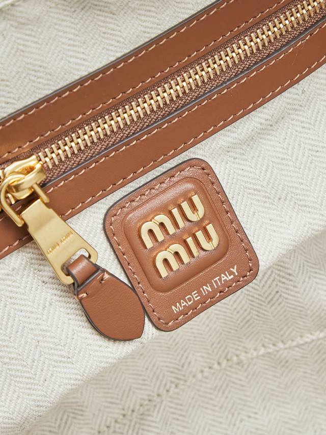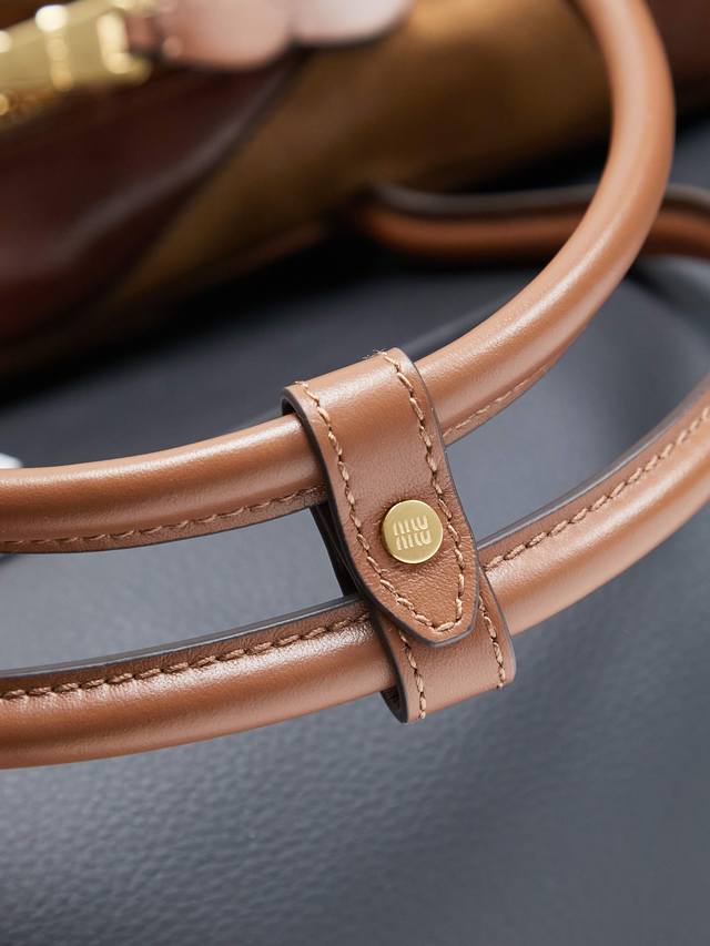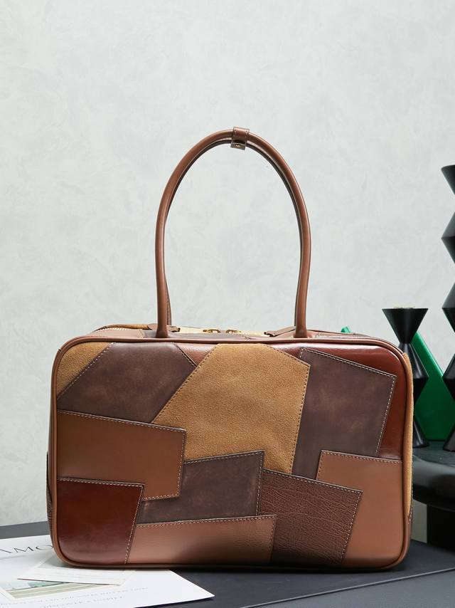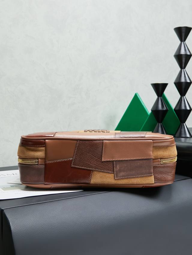 5Bb117: Miu Miu's new patchwork briefcase, handcrafted with various leathers, features a bold and innovative design that perfectly embodies Miu's unconventional, carefree, and inclusive attitude towards life. This bag is cool, showcasing exquisite multi-functional design, blending menswear and womenswear elements, exuding a relaxed, natural, and individualistic style. It boasts a large capacity while remaining lightweight, featuring a brand-new canvas lining. A global sensation, it's loved by fashion bloggers and celebrities alike. Dimensions: 34 x 23 x 12 cm. Comes with original packaging.