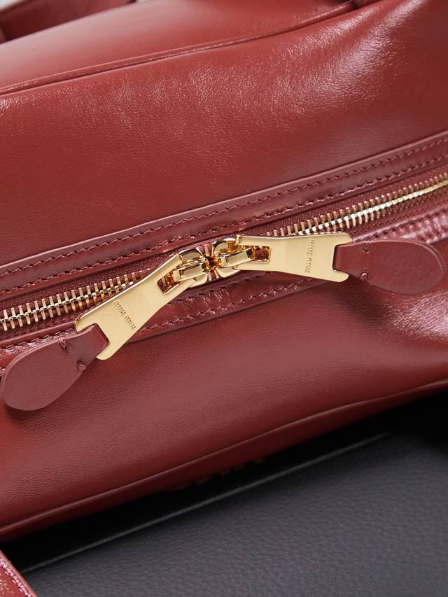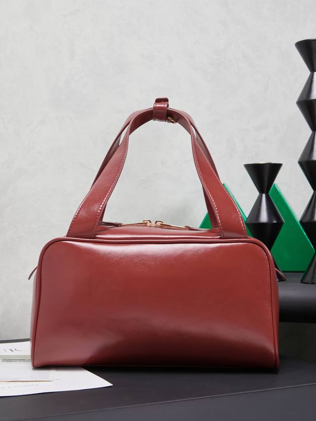 5Bb182, the new popular underarm bowling bag, this new interpretation of the handbag features a flat handle, an elegant logo on the front and the subtle luster of soft calfskin, reflecting Miu M's refined experimental spirit. The leather is soft and high-end, with a novel and unique style. It has a cotton satin lining and an inner zipper pocket. The wrist is suitable for use as a handbag or a shoulder bag. Dimensions: 28X15X13Cm,