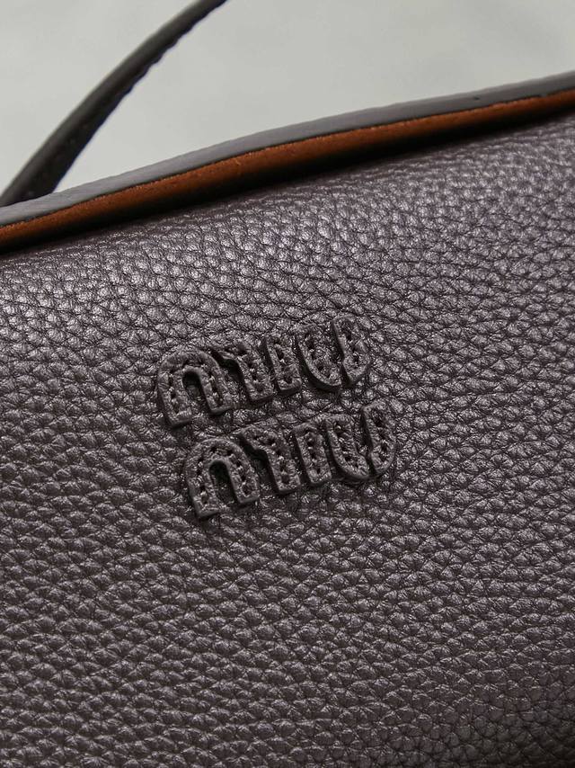 5Be097 Miu's newest crossbody bag from a Japanese pop-up store. Made of top-grade imported cowhide, the leather has a luxurious feel, elegant and vintage. The bag is soft yet structured, exuding a casual and relaxed vibe, perfectly embodying a sweet and cool style. The hand-stitched logo on the leather adds a touch of sophistication. Suitable for commuting or shopping, its practicality is maximized. Dimensions: 18 x 10 x 7 cm.