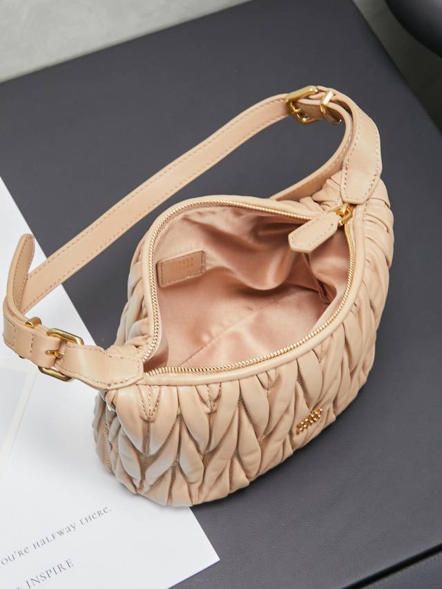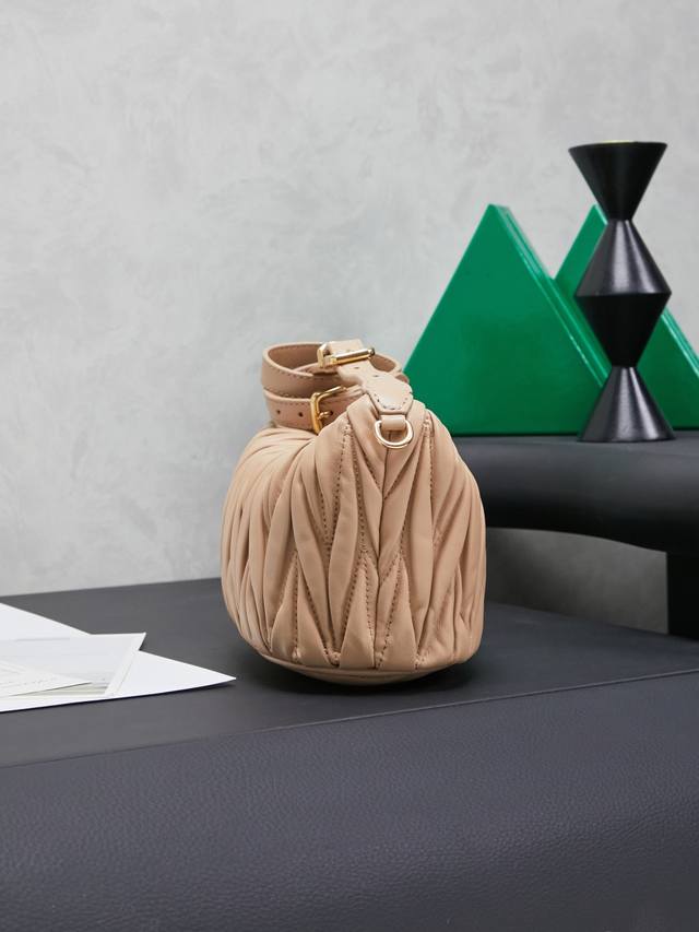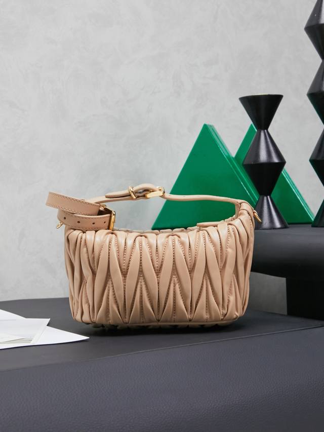 5Ne026, new mini lunch box bag, classic Matelasse embroidery, a symbol of Miu style, practical and functional design, soft and high-grade leather, novel and unique style, cotton satin lining, detachable extension strap, can be used as an accessory, wrist suitable for use as a handbag or shoulder bag, size: 15 x 8.5 x 8 cm,