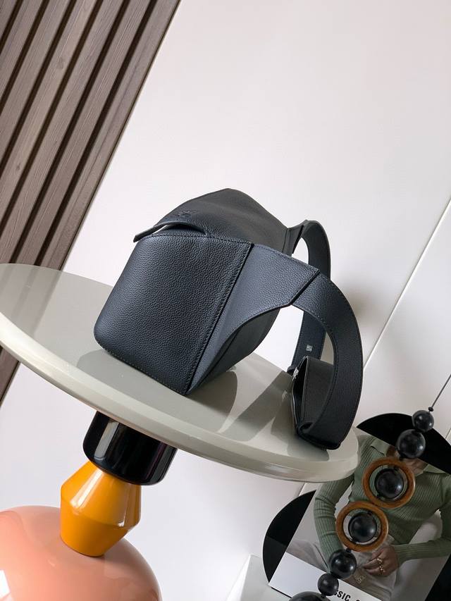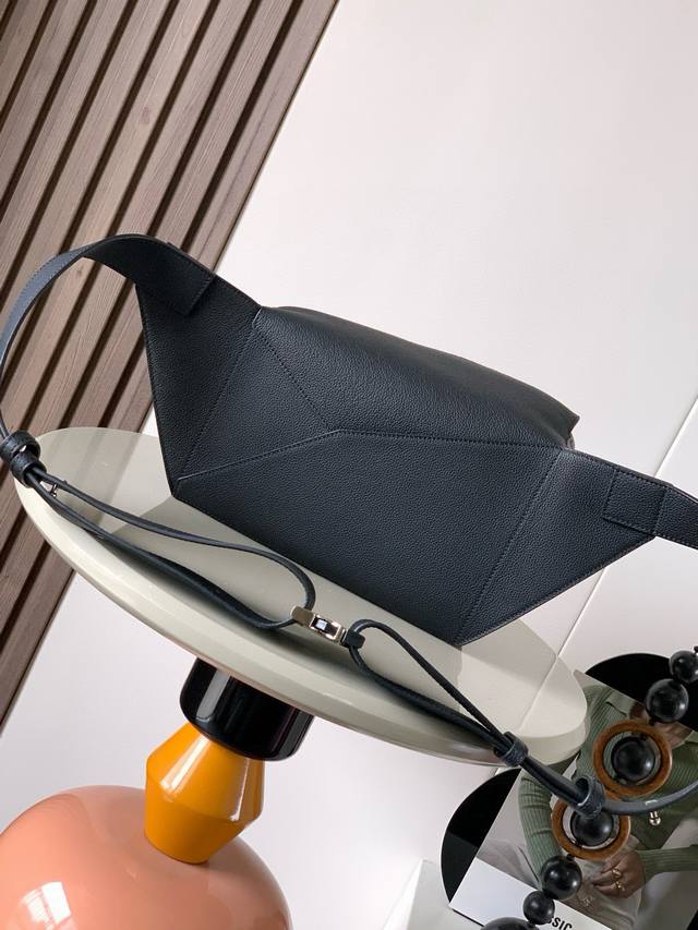 A new small classic cowhide leather puzzle waist bag. The rectangular shape and precise cutting techniques create the puzzle's unique geometric lines. This small waist bag is made of classic cowhide leather. The leather is soft and lightweight, and the design is low-key and recognizable. It can be worn for both business and leisure. Later, I discovered a puzzle waist bag. Compared to classic puzzles, it is relatively niche. This waist bag removes the handle of the classic puzzle and moves the rear zipper pocket to the front. The belt also has a non-detachable latch buckle. The wide belt retains the casual and artistic basic shape of the classic puzzle bag, adding a cool mechanical touch. It is also classic and versatile. Not only does it have a considerable capacity, but it also improves the upper body proportions. It can be carried on the shoulder or crossbody with an adjustable shoulder strap with a metal buckle closure. Size: 24cm~16cm~10.5cm. Style: 9114. Color: Black with lychee pattern.