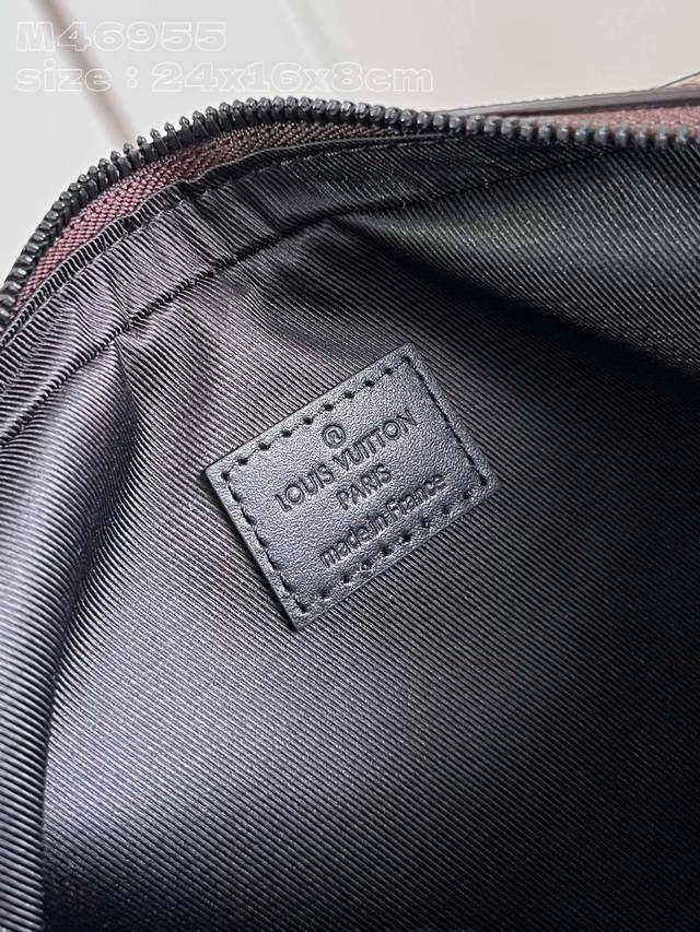 A photo of the original M46955. This Alpha messenger bag features Monogram Eclipse canvas, a modern aesthetic. Zippered compartments ensure secure storage, while rivets on the front pocket add the brand's signature touch. 24 x 16 x 8 cm (Length x Height x Width) M