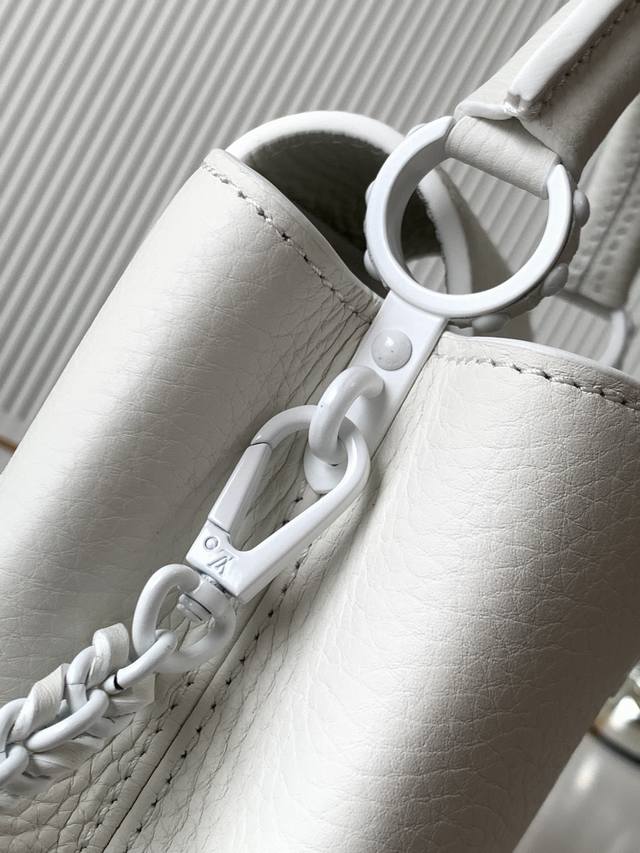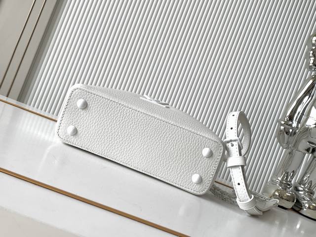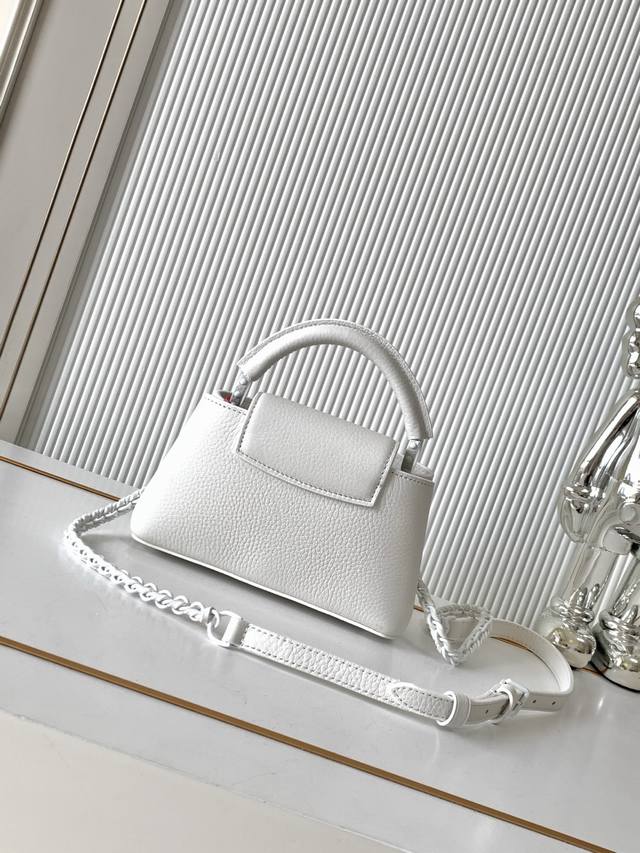 All-steel hardware Mb163C01 variable code chip Premium with full set of packaging M23955 White This Capucines Bb handbag uses gorgeous cow leather and matte metal parts to convey a modern attitude. It brings together classic elements of the same series with a new horizontal configuration. The adjustable braided chain is convenient for shoulder or crossbody, making it a trendy choice for storing mobile phones, short wallets and other small items. Size: 22X128Cm