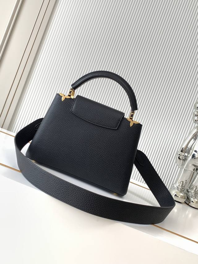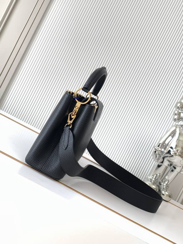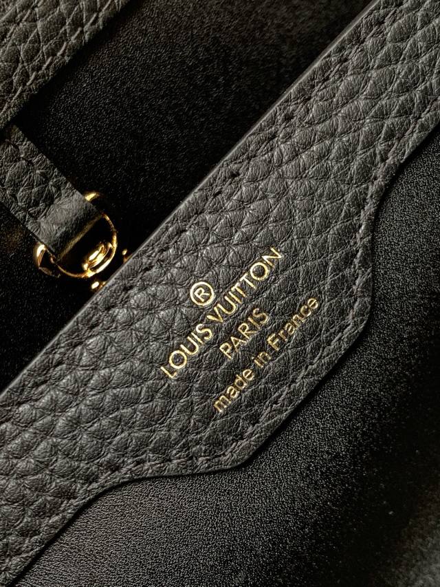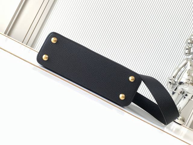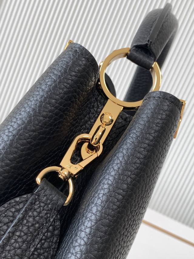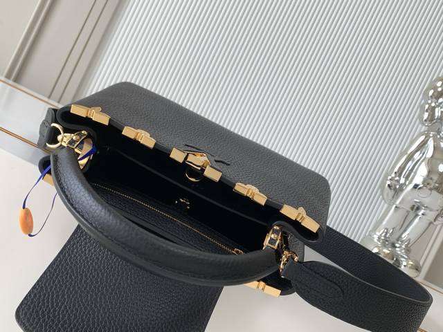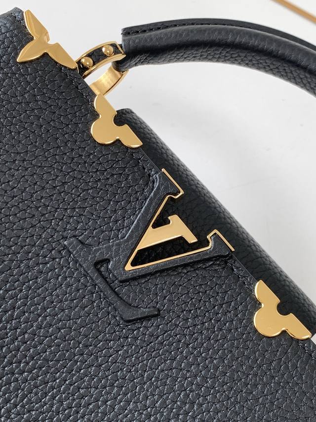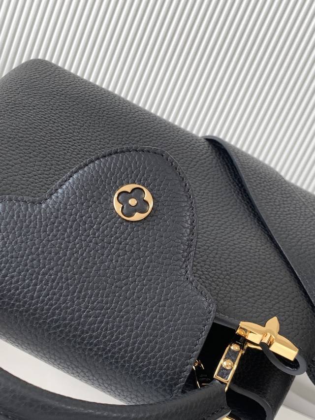The flower crown hardware Capucines, the top edge of the leather body surrounded by flowers is just like a classic, the blooming of Monogram flowers adds a touch of beauty to the simple lines. This Capucines Mini handbag highlights elegance and luxury.