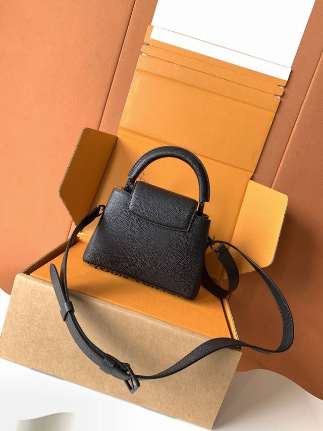 All-steel hardware, variable-coding chip, premium quality, and complete packaging. M25256 Mini, premium imported leather. This Capucines Mini handbag features a horizontal design, offering a fresh take on the brand's classic design. Luxurious cowhide leather and hardware exude a matte finish, while ample storage accommodates a phone, a long wallet, and other daily essentials. The removable and adjustable leather shoulder strap allows for versatile styling options.
