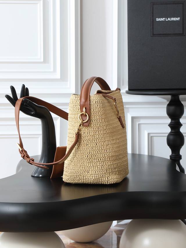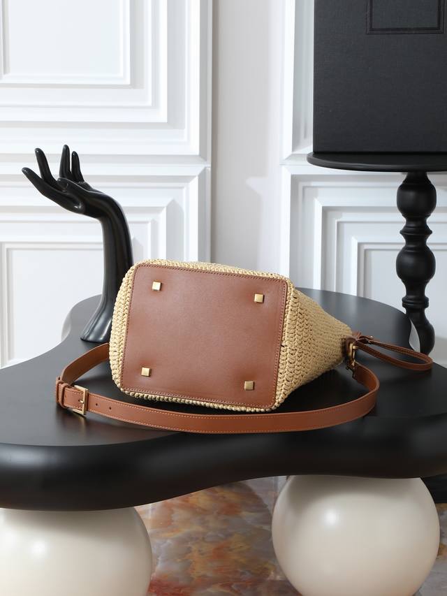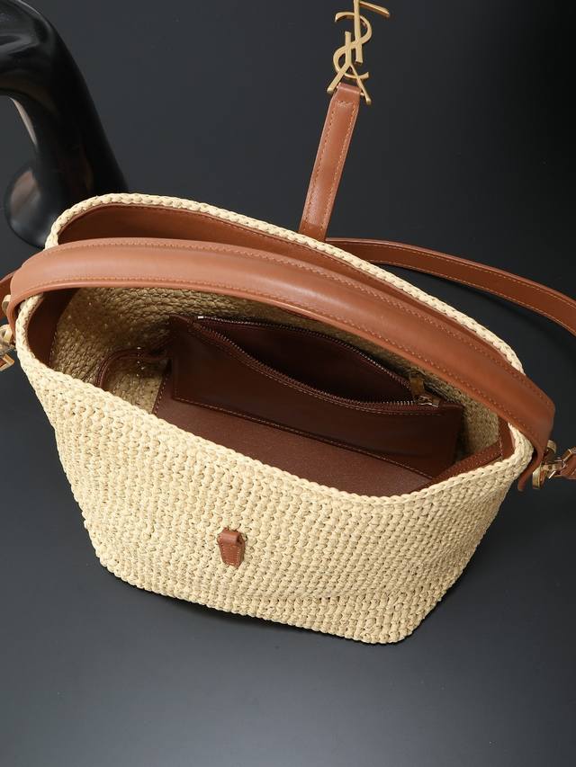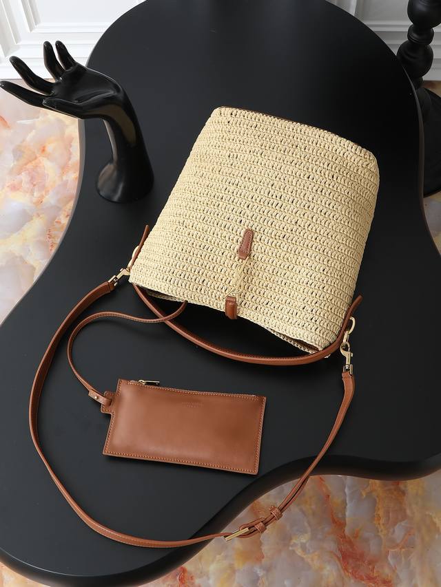 / Apricot woven Le 37 woven bucket bag_ The joy of straw bags