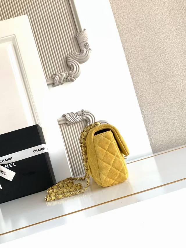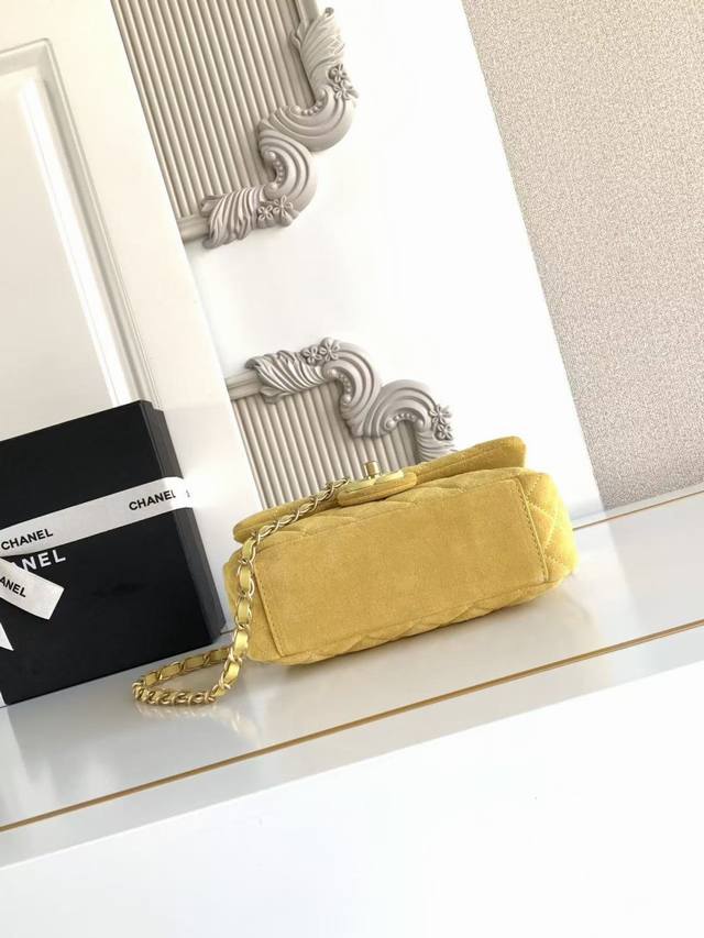 As5989 Small 26C series suede CF bag, classic quilted pattern + light gold hardware, retro yet sophisticated! The suede is soft and delicate, perfect for autumn and winter. The chain strap design makes it suitable for shoulder or crossbody wear. The size is just right, super practical for everyday outings. The 26C series' color scheme and materials have a vacation vibe, a must-have for fashionistas! Dimensions: 14X20X6Cm