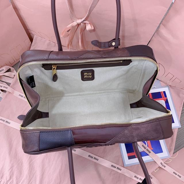 5Bb117: Miumiu's New Patchwork Briefcase, Handmade, Made Of A Variety Of Leather Stitching, Bold And Innovative Design Perfectly Interprets Miu's Eclectic, Casual And Tolerant Attitude Towards Life. This Bag Is Very Cool, With A Refined Multifunctional Design, Integrating Men's And Women's Elements, Casual And Lazy, Natural And Free, Full Of Personality, Large Capacity And Light, Brand New Canvas Lining, Popular All Over The World, Major Fashion Bloggers And Stars Love To Carry It, Size: 34X23X12Cm