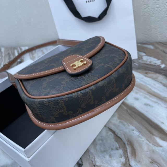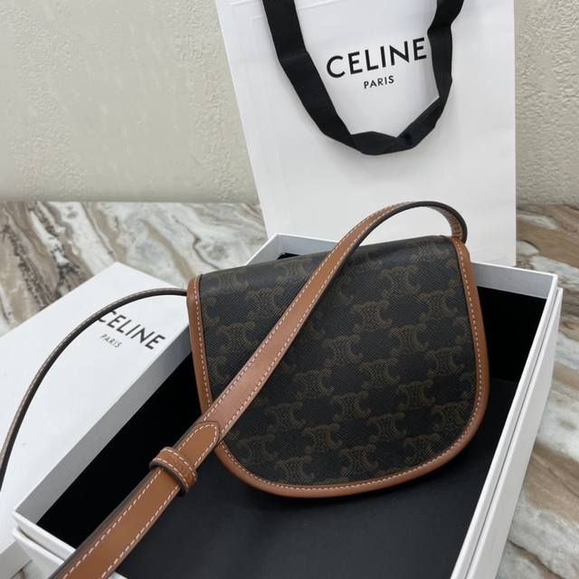Authentic Besace Mini Saddle Bag, New Style, Mini Logo Print, Wagyu Leather Handbag, 6 x 4 x 2 inches (15 x 11 x 4 cm), Triomphe Canvas logo print, Wagyu leather trim, Fabric lining, Crossbody and shoulder carry, Flap with metal Triomphe snap closure, 1 main compartment, 1 flat pocket, Adjustable leather shoulder strap, 21 inches (54 cm) long. Item Number: 196702Bzj.04Lu