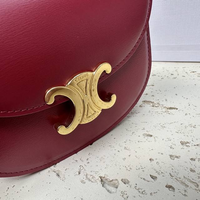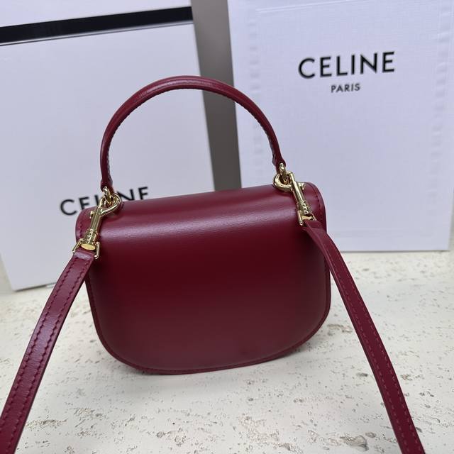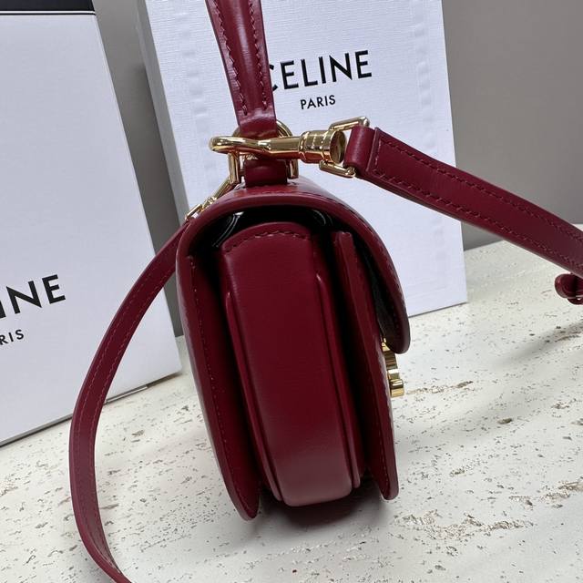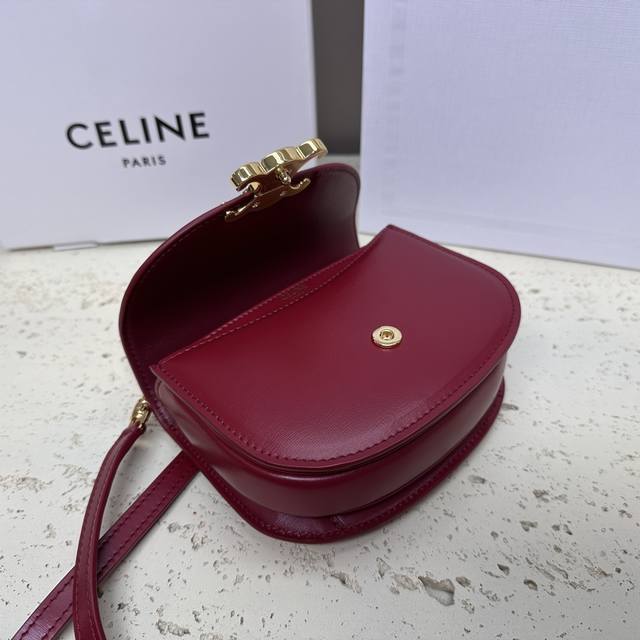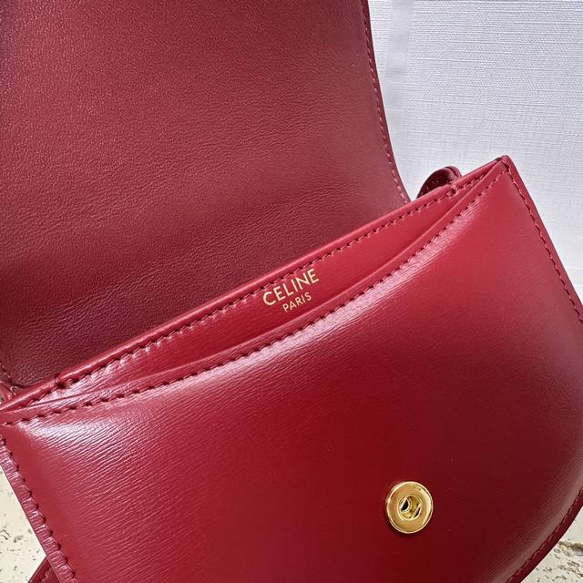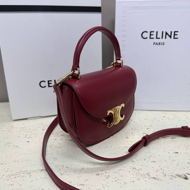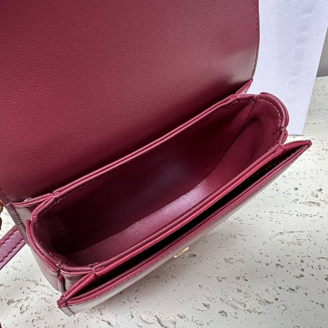 Authentic Besace Triomphe Mini Glossy Calfskin Handbag 6 x 5 x 2 inches (15.5 x 11.5 x 5 cm) This model cannot accommodate larger smartphones (like the Plus version). Crossbody and shoulder carry. Triomphe metal snap closure. One main compartment. Flat interior pocket. Adjustable leather shoulder strap length: 54 cm. Leather handle length: 6 cm. Item number: 10L063
