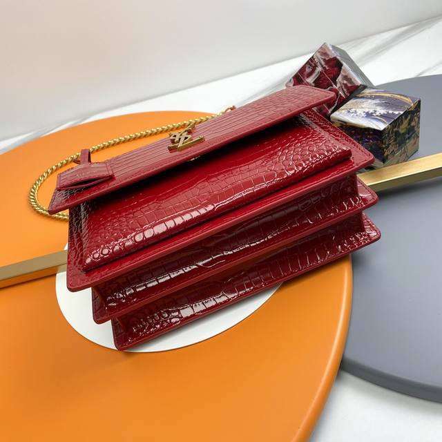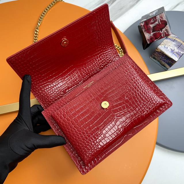 Authentic DDD #Big Red Gold Buckle# Ddd The unbeatable classic crocodile-embossed Sunset bag! Its popularity remains undiminished even after so long, demonstrating its exceptional appeal! High-quality Italian imported cowhide, authentic molded hardware, meticulous attention to every detail, striving for the closest possible resemblance to the genuine article. High quality without the exorbitant price. Don't hesitate, act now! Ddd Size: 22X8X16 Ddd Model: 442906Zx DDD