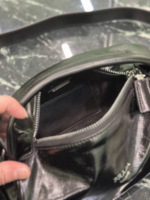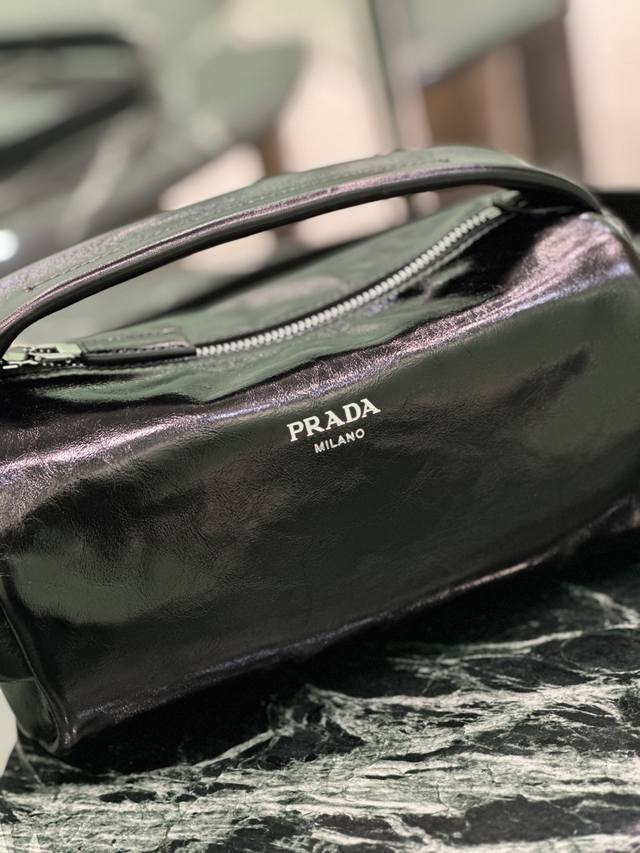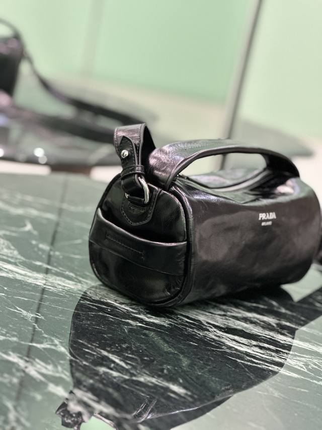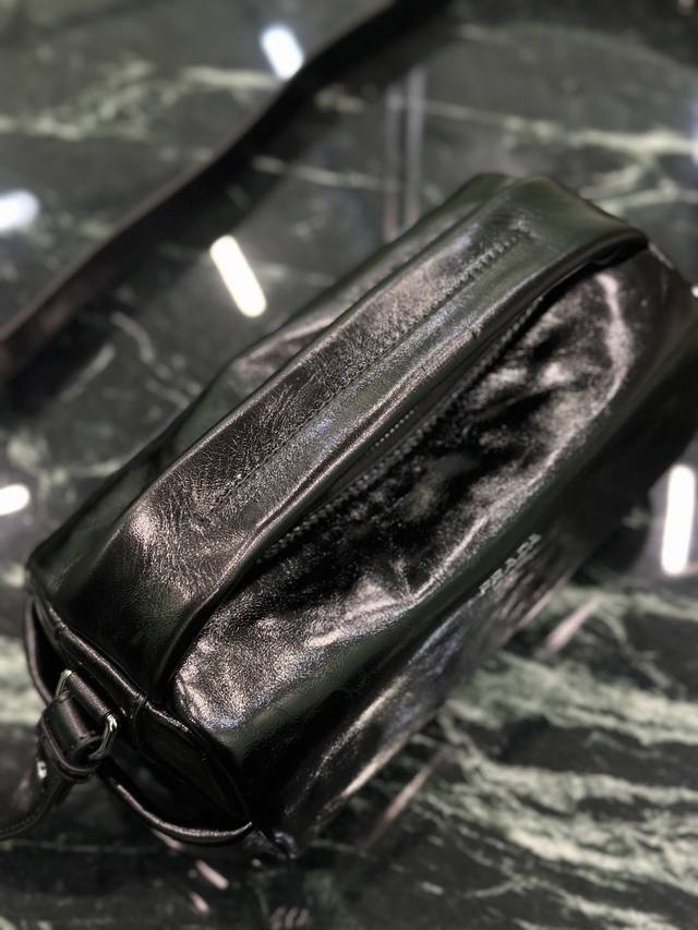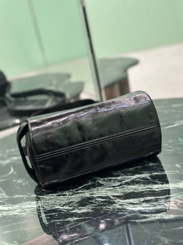 Authentic Boston Waxed Leather Bag. This stylish and compact Boston handbag draws inspiration from vintage designs and details. The waxed cowhide leather has a glossy finish, giving the accessory a soft and unique look, further accented with a metal letter logo. It comes with a detachable long shoulder strap and offers ample storage space. Dimensions: Length 24cm x Height 11cm x Base 11cm. Style Number: 2Vh188