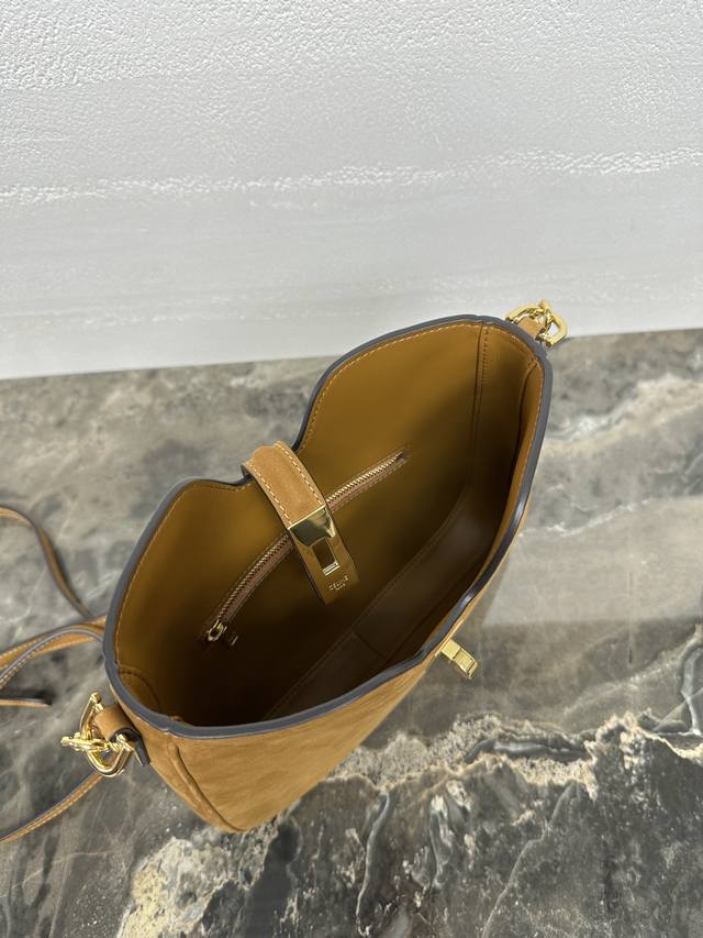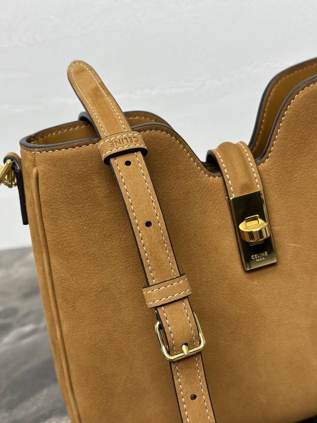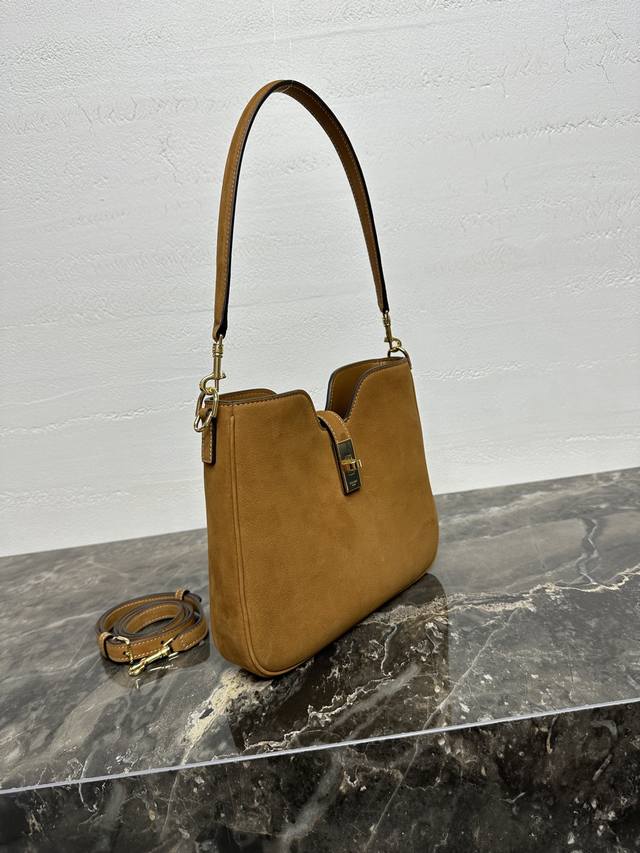 Authentic Camille 16 Soft Small Top-Grain Suede Calfskin Handbag Two detachable shoulder straps: one for hand or shoulder carry, 9 inches 22 cm long; the other adjustable for crossbody wear, minimum length 17 inches 42 cm, maximum length 19 inches 48 cm. Lambskin lining. Gold-tone finish. Hand, shoulder, and crossbody carry. Turn-lock closure. One main compartment. One interior zip pocket. Dimensions: 24.5 x 21.5 x 5 cm. Item Number: 120693