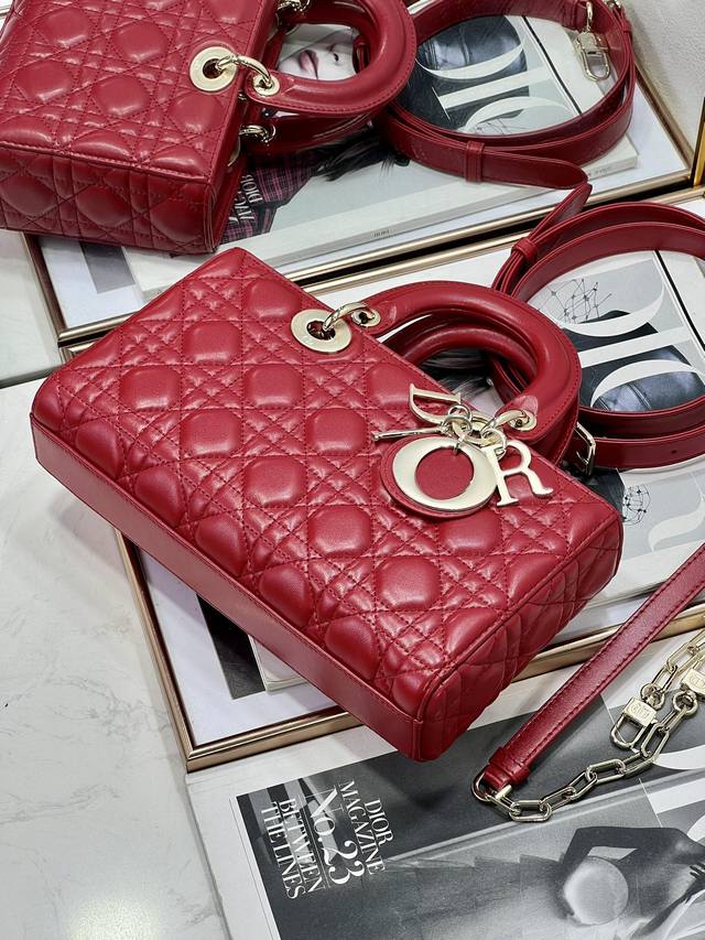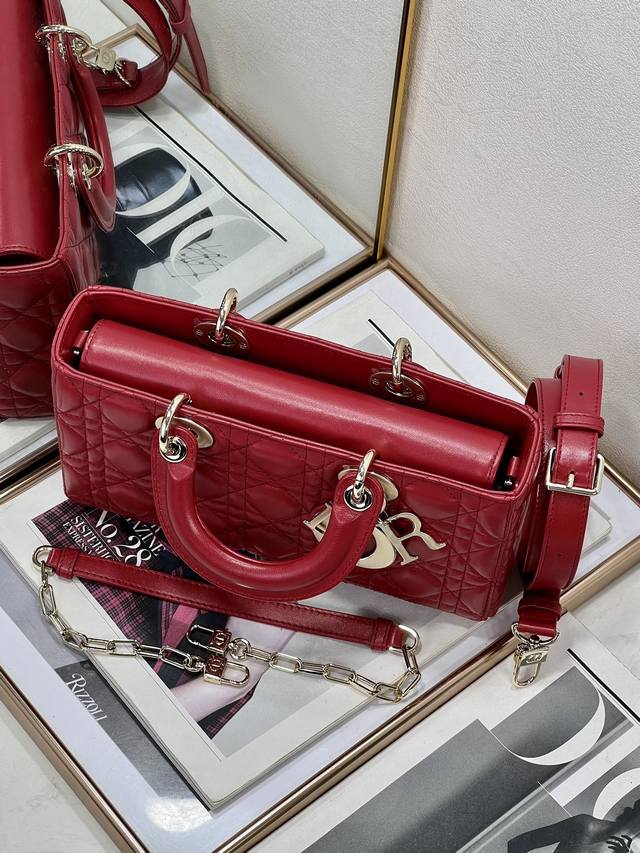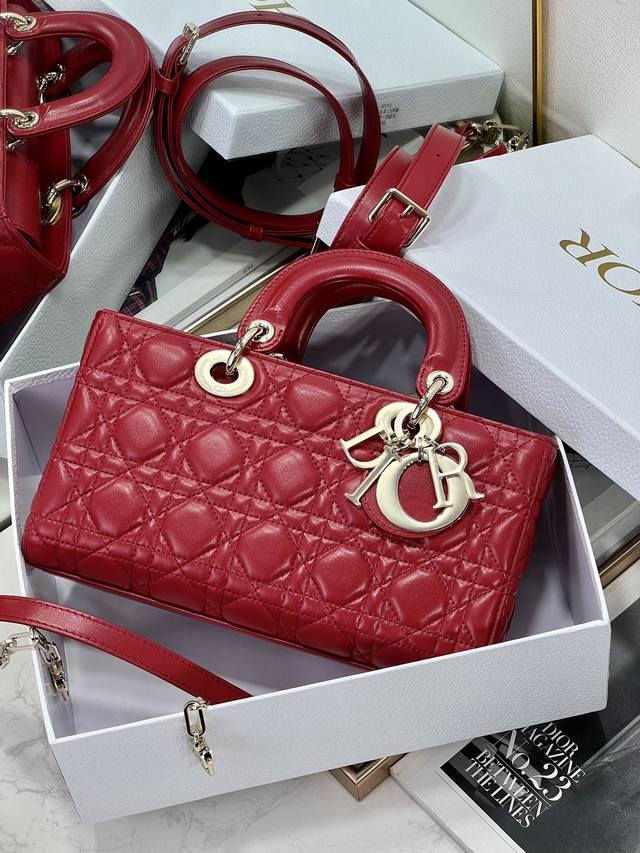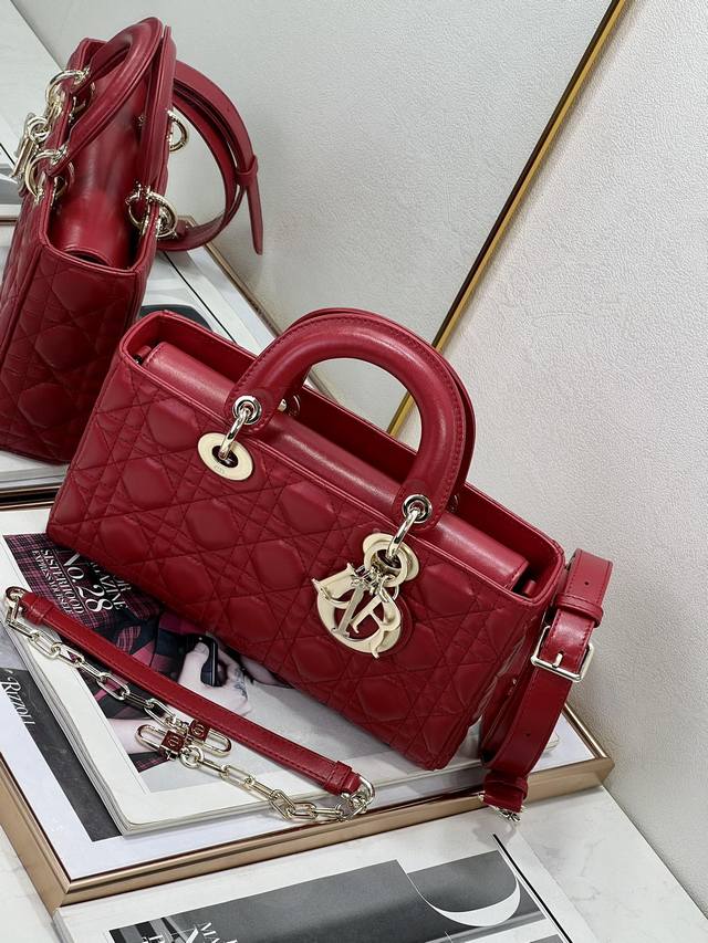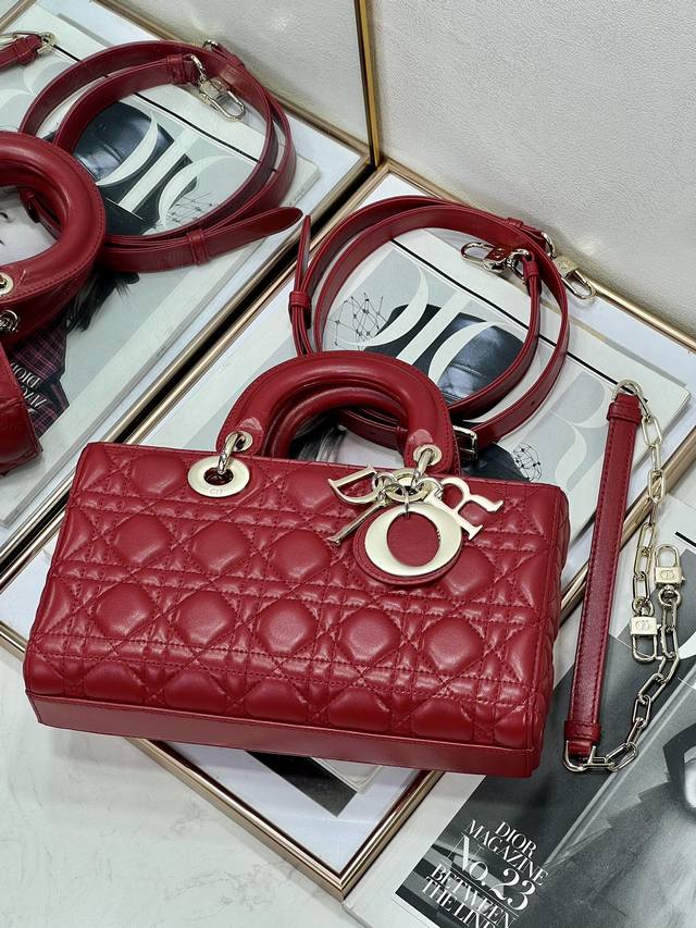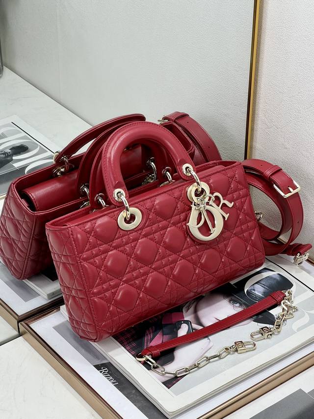 Authentic DDD Cherry Red Large Size In Stock DDD The brand new D-Joy is back with a bang, a super hot seller! The bag comes with two shoulder straps, offering multiple ways to wear it. It looks beautiful and stylish when worn. The classic diamond pattern design, paired with soft lambskin, is elegant and fashionable. DDD Size: 26*6*14Cm DDD 9250 DDD