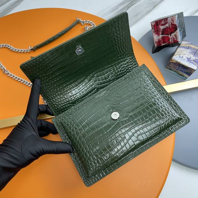 Authentic DDD #Dark Green with Silver Buckle# Ddd The unbeatable classic crocodile-embossed Sunset bag! Its popularity remains undiminished even after so long, demonstrating its exceptional appeal! High-quality Italian imported cowhide, authentic molded hardware, meticulous attention to every detail, striving for the closest possible resemblance to the genuine article. High quality without the exorbitant price. Don't hesitate, act now! Ddd Size: 22X8X16 Ddd Model: 442906Zx DDD