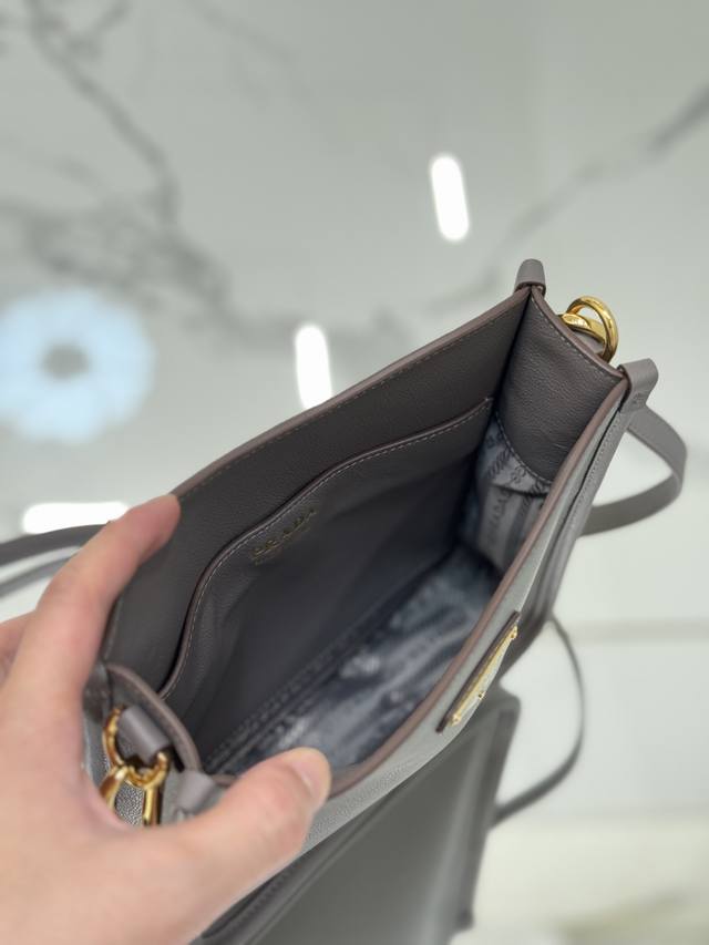 Authentic Ddd Double Shoulder Strap Ddd This leather shoulder bag features a simple design, crafted from imported calfskin, with a distinctive metal triangular logo on the front. It comes with two detachable logo webbing straps and a leather shoulder strap, allowing for easy switching between different outfits and occasions! It exudes a modern style. High-end fashion, it's a staple in everyday wear. Ddd Dimensions: Length 20cm x Height 21cm x Base 7cm Ddd Style Number: 1Bh220 DDD