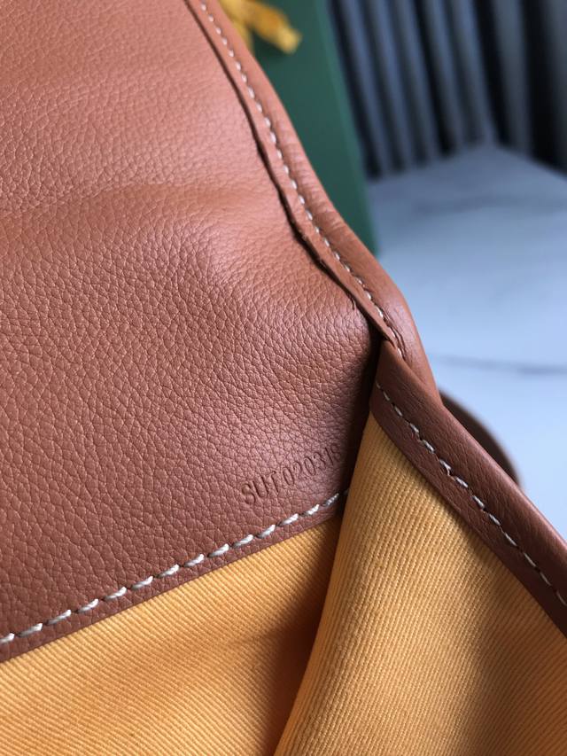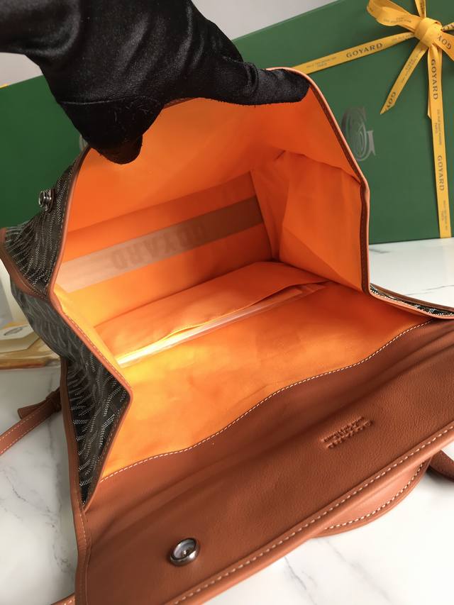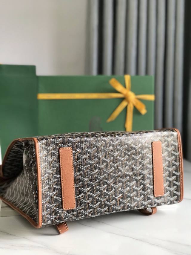 Authentic Goyard Saint Leger Foldable Backpack. Following Goyard's consistent modular design and functionality principles, this Saint Leger bag boasts a super-large interior space and features a detachable, adjustable shoulder strap. It can also be cleverly converted into a briefcase or backpack, making it an indispensable companion for daily outings. Dimensions: 33*35*16cm. Product ID: 020318.
