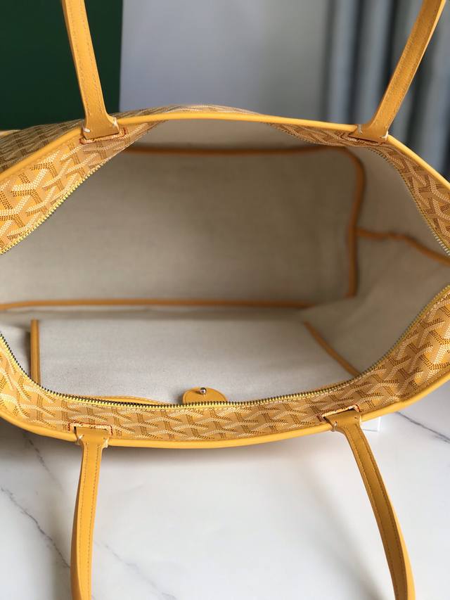 Authentic Goyard. Through numerous research and improvements, Goyard continuously enhances its fabrics and leathers, offering comprehensive and exclusive customization to consistently meet customers' high-quality requirements. If you're concerned about the security of a bag without a zipper, then a zippered tote bag is definitely the first choice, providing ample security and privacy. The bottom fabric uses the same custom double-layered thickened linen as the original, and the leather is exclusively upgraded to top-grain South African tumbled leather, which is supple and non-irritating. Size: Opening 49cm, Bottom 35cm * Height 27cm * Bottom Width 14cm. 020186