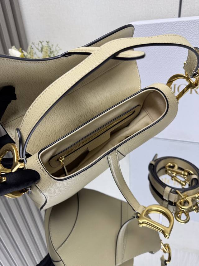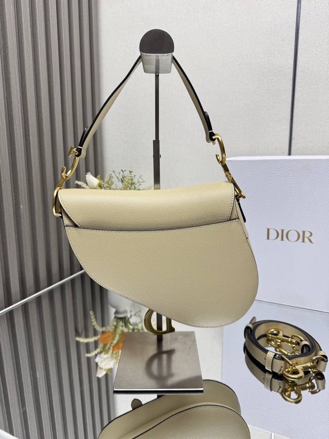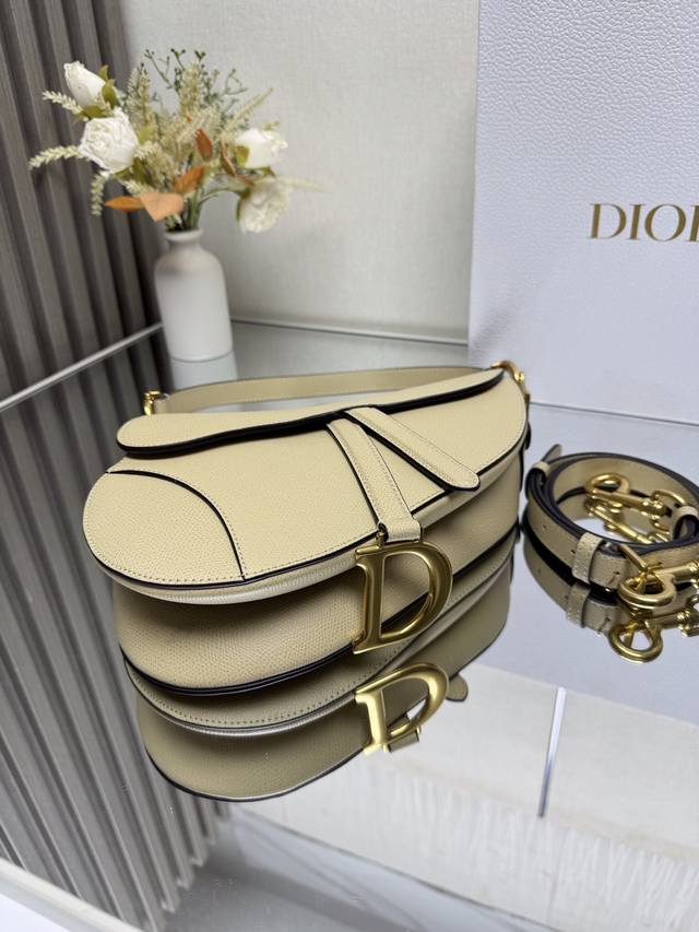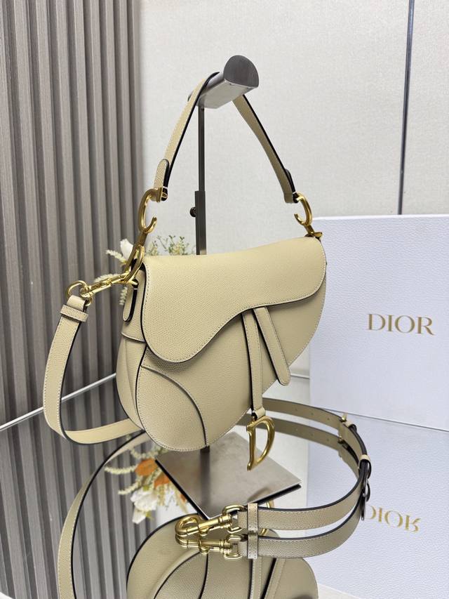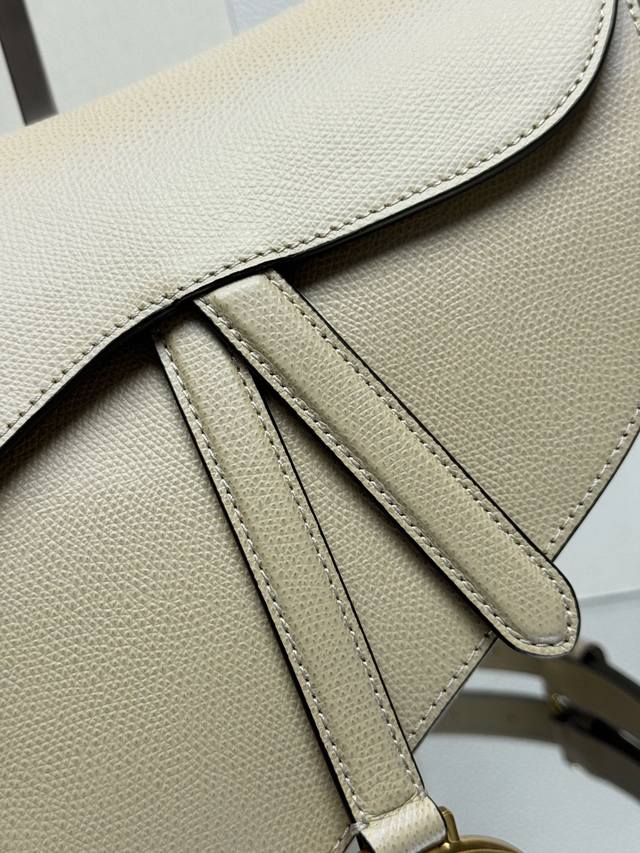 Authentic, high-quality Ddd DS saddle bag, large size, palm-textured beige leather. A major comeback, recreating classic beauty. This handbag series has just been released and has immediately become a must-have item for fashionistas. The new ethnic-style shoulder strap and metal hardware allow for crossbody wear to showcase freedom, dynamism, and unique personality. The new version comes with a matching leather shoulder strap for easy carrying, and can also be paired with other embroidered shoulder straps! Large size 0989#, dimensions 25.5