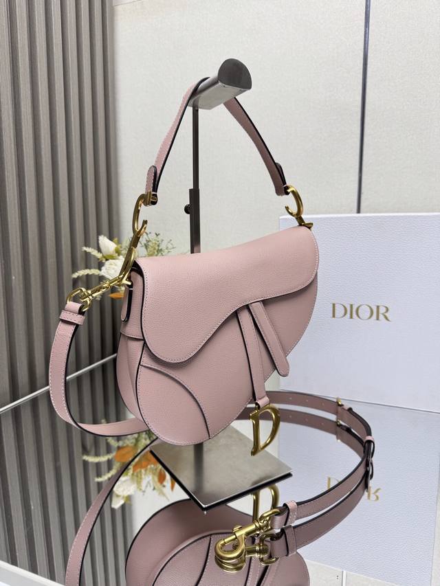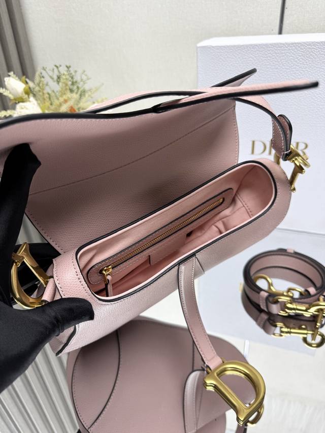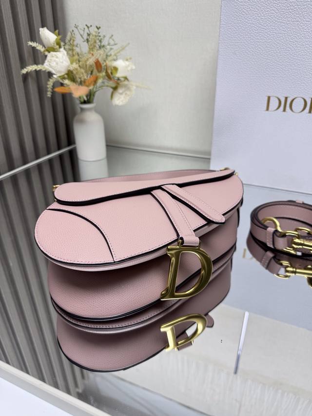 Authentic, high-quality Ddd DS saddle bag, large size, vintage pink leather with palm print. A major comeback, recreating classic beauty. This handbag series has just been released and has immediately become a must-have item for fashionistas. The new ethnic-style shoulder strap and metal hardware allow for crossbody wear to showcase freedom, dynamism, and unique personality. The new version comes with a matching leather shoulder strap for easy carrying, and can also be paired with other embroidered shoulder straps! Large size 0989#, dimensions 25.5