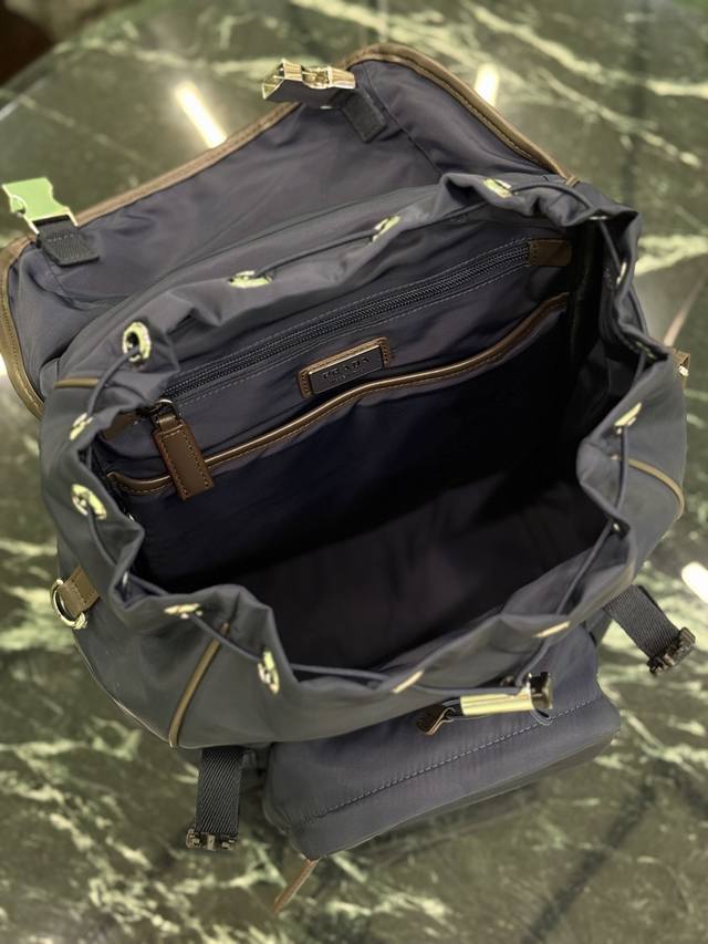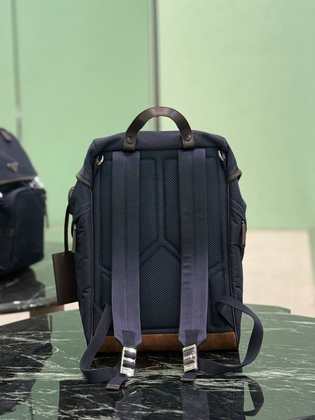 Authentic DDD New Backpack DDD This nylon backpack features contrasting suede trim, creating a unique style with creativity and technology. Multiple pockets and a technically padded back add a distinctive design element. DDD Dimensions: Length 27cm x Height 45cm x Base 17cm DDD Style Number: 2Vz135 DDD