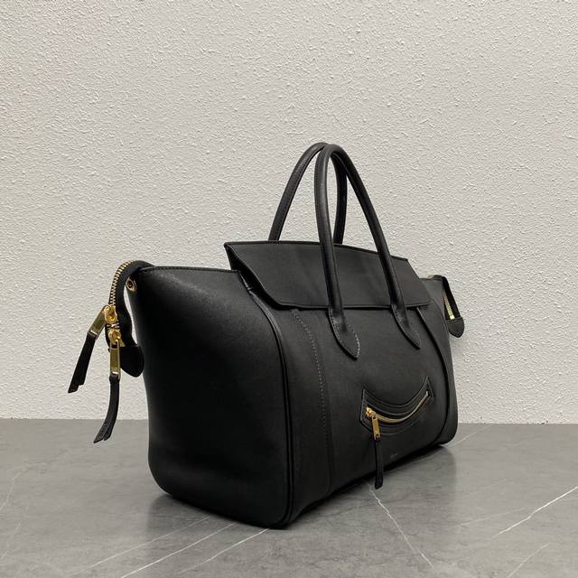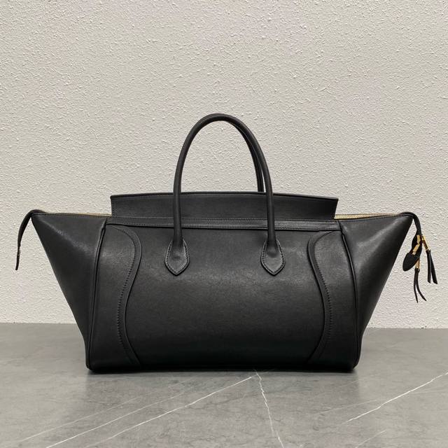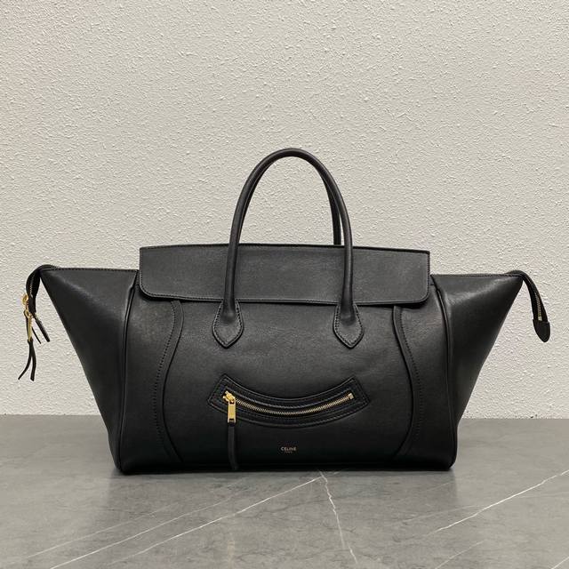 Authentic Product DDD New Arrival: 2026 Spring Collection - New Luggage Bag DDD The Ce Luggage Bag Returns with a Fresh Look! DDD Ce printemps 2026 Spring Collection! DDD New Luggage Luggage Bag DDD A Classic from Our Memories, Reborn! DDD Lightweight Material, Modern Lines DDD Still the It Bag with Full Recognition! DDD Showcasing a Simple and Clean Modern Style. New Creative Director Michael Rider surprised everyone with the return of the "smile bag" in his 2026 Spring debut. The smooth, lustrous leather, back stitching, and piping create a soft, rounded horizontal silhouette, while the side zipper design presents a unique smiling curve, cleverly echoing the name "smile bag." Reinterpreting the classic design with a modern silhouette, the overall look is lighter and more versatile, presenting an elegant yet casual style! DDD Style Number: 123693 DDD Color: Black DDD Size: Bottom 36X22X16Cm DDD Opening 56Cm DDD: p114580