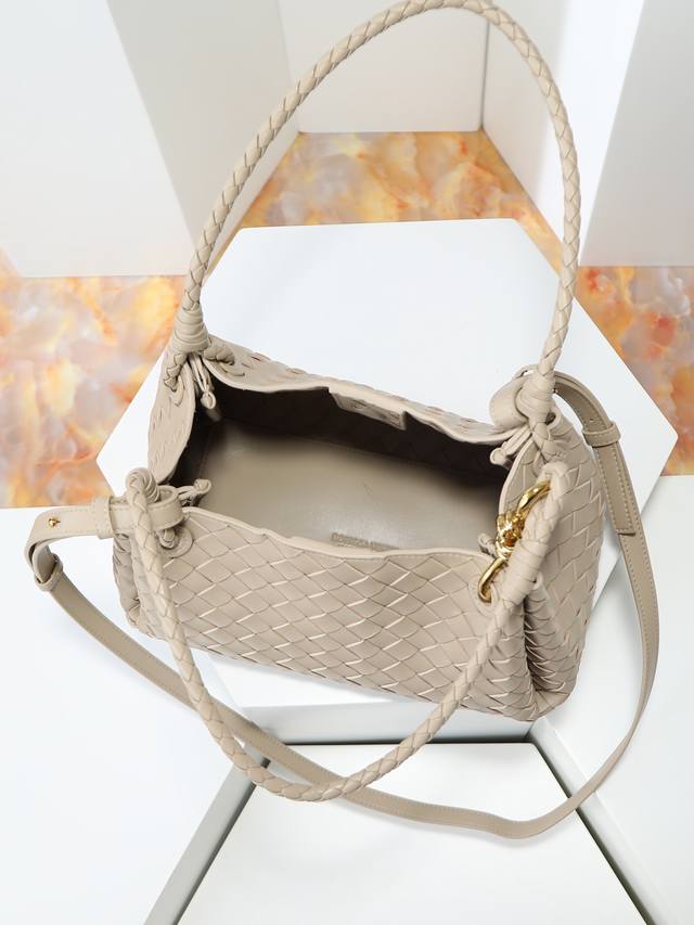 Authentic Product DDD New Bv Intrecciato Woven Leather Shoulder Bag 835921. Features a detachable shoulder strap, a built-in mini pouch, and retains Bv's unique woven design. This parachute bag is so appealing you'll fall in love even before seeing it in person. The small gold knot accents add a touch of understated elegance, perfect for various occasions. Size: 29.5 x 18.5 x 17.5 cm. DDD
