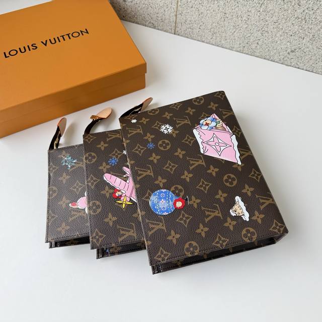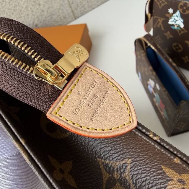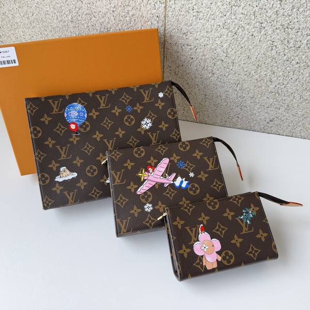 Authentic DDD Top-Tier Original M15357 Handbag Set (Three-Piece Set) This three-piece handbag set, part of the "Trio Small Bag Series," is made of Monogram canvas. It depicts the manor's mascot, "Vivienne," traveling by train and bicycle, enjoying a hike, and even encountering adorable winter animals from a hot air balloon ride